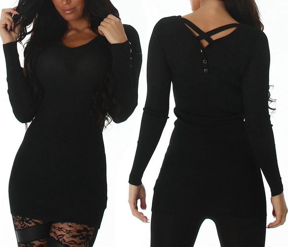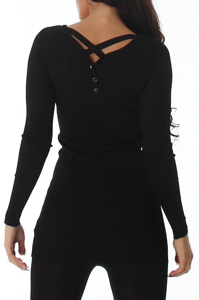 Long Pullover RippStrick sehr elastisches Material Rückenausschnitt Kreuz Design mit Herz Zierknöpfen Langarm figurbetont tailliert sehr eng anliegend elastisches Material Eye Catcher Hot & Sexy In-Style Look _____________________________ Einheitsgröße - Uni - Ohne Größe Maße in ungedehnten Zust