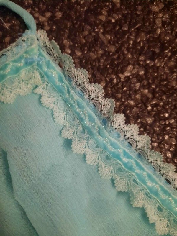 traumhaftes Babydoll Top Brustbereich blickdicht unterlegt Spitzenborde, Samtglitzerband Spaghetti Träger V Ausschnitt figurbetonter Schnitt elastisches Material Eye Catcher Hot & Sexy In-Style Look _____________________________ Im Artikel steht Französische Größe Maße in ungedehnten Zustand loc