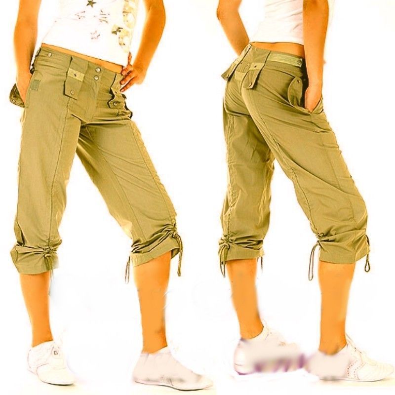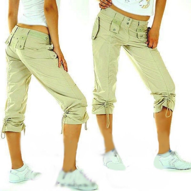 SeXy Miss Damen Girly Capri Hose Stoff Bermuda 38 40 42 beige khaki