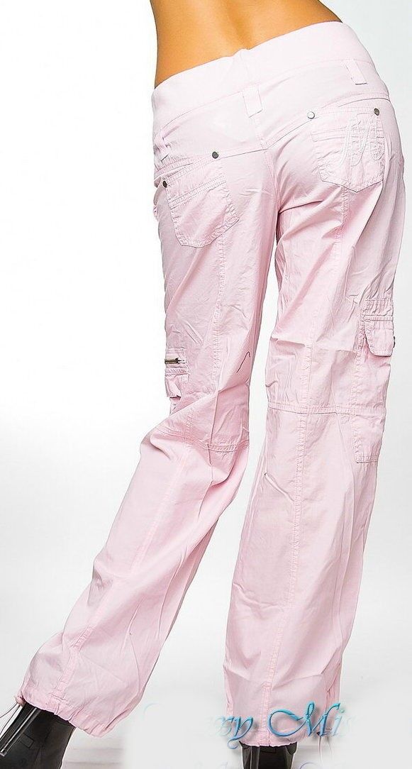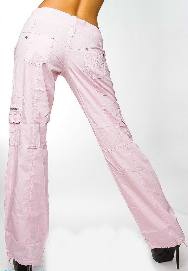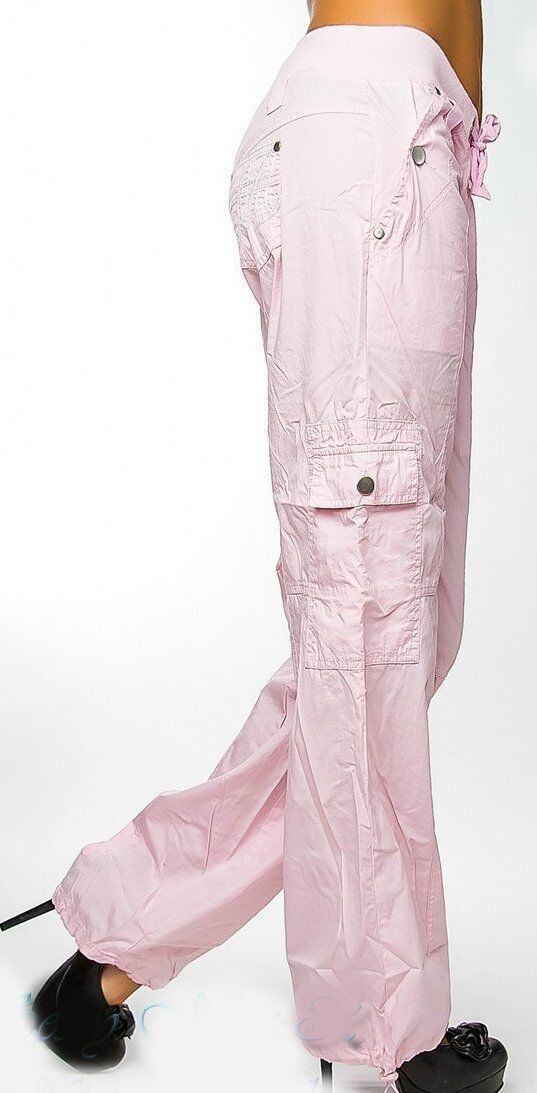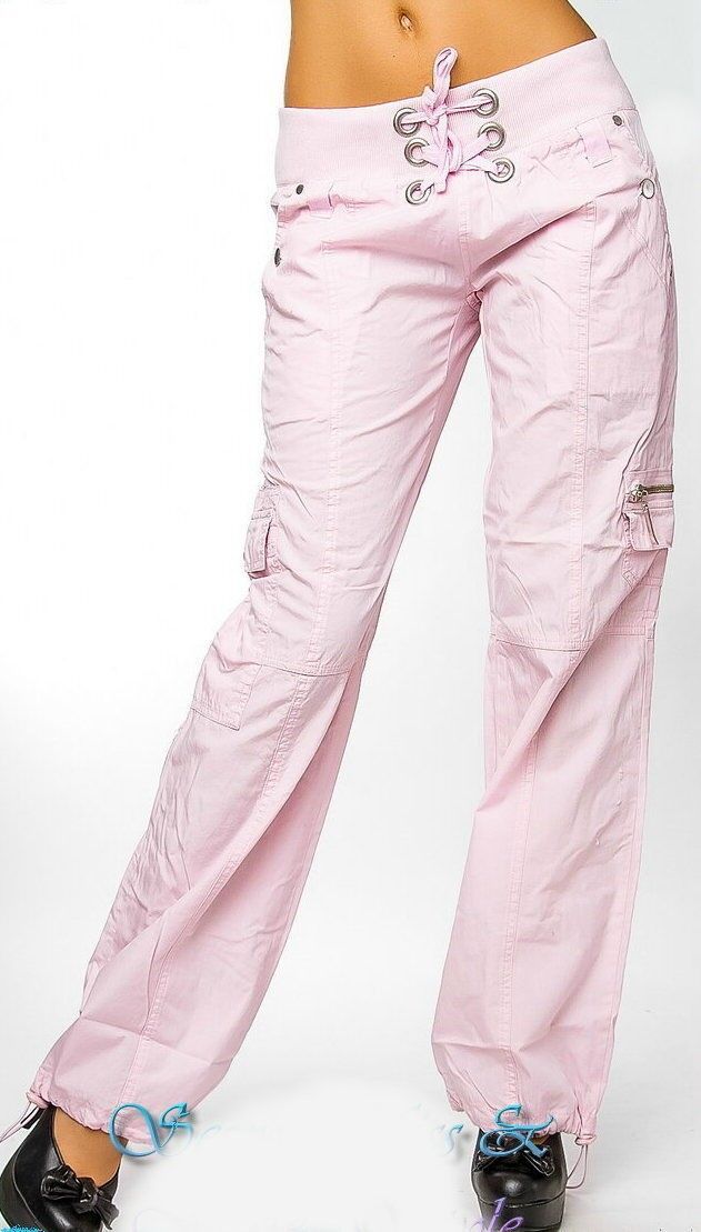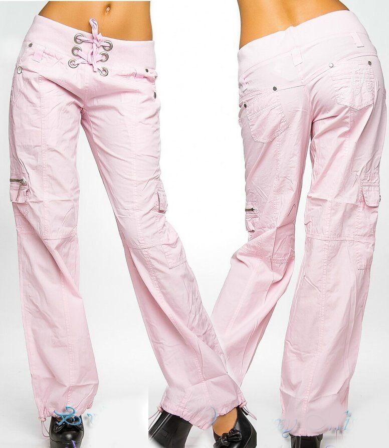 Sexy Miss Damen Girly Cargo Sommer Stoff Hose Schnürung 34 36 38 40 NEU rosa