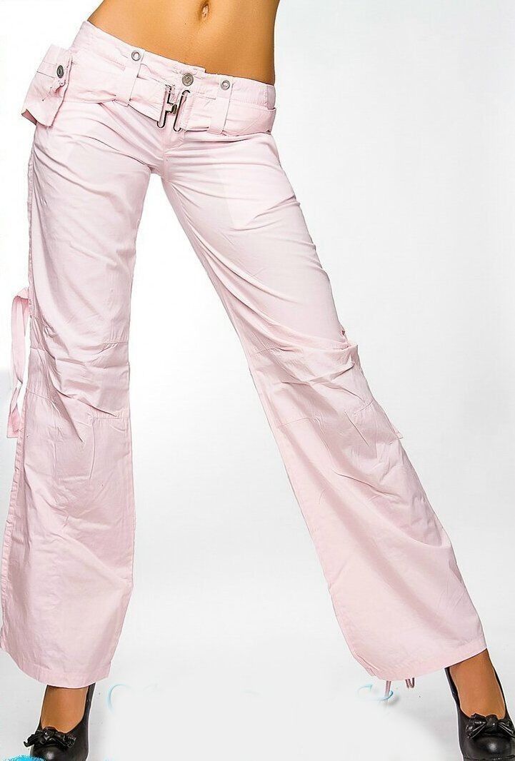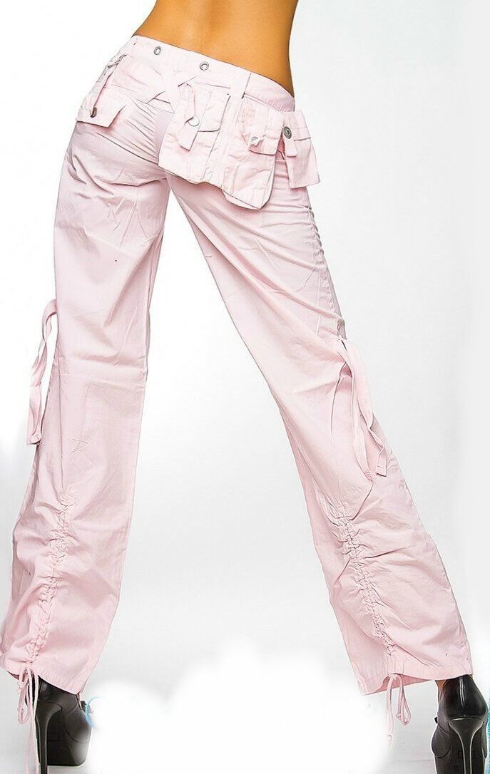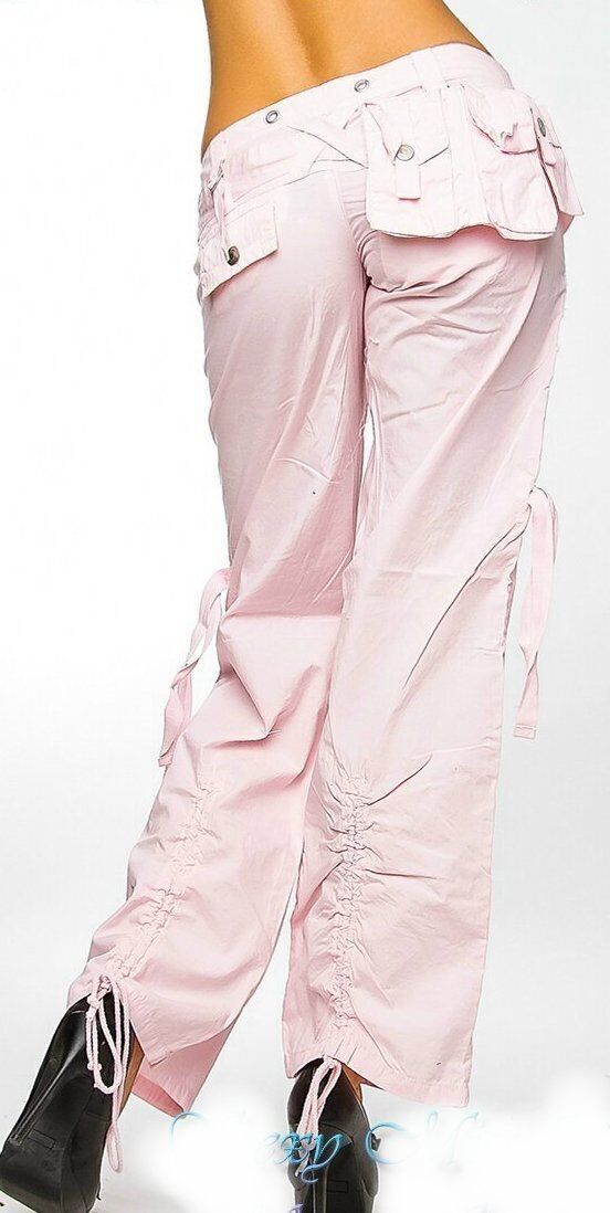 Sexy Miss Damen Girly Cargo Sommer Stoff Hose Schnürung 36 UK 10 NEU rosa