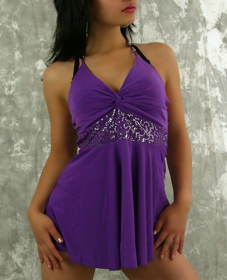 SeXy Miss Damen Girly Glitzer Pailletten Babydoll Glitzer Top XXL 42 (40) lila