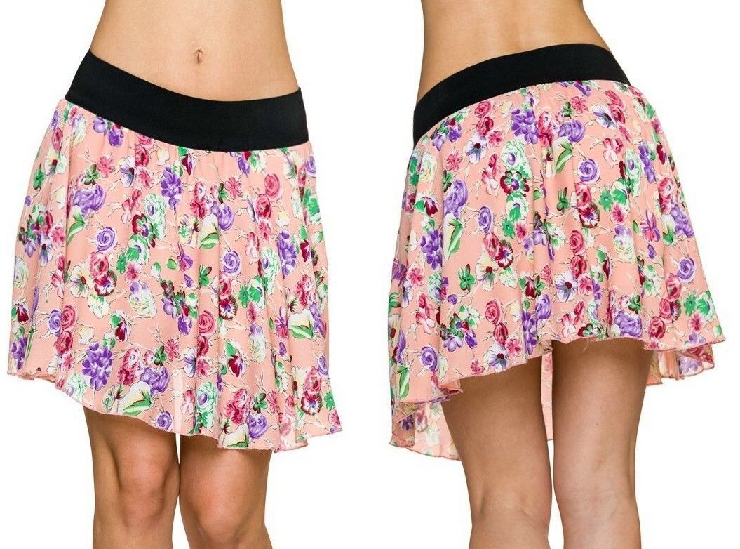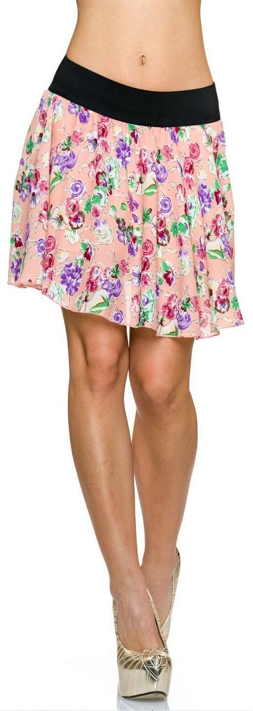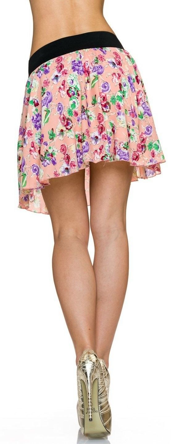 Sexy Miss Damen Girly Mini Rock Flower Stretch Bund Blumen XS/ S coral Bunt