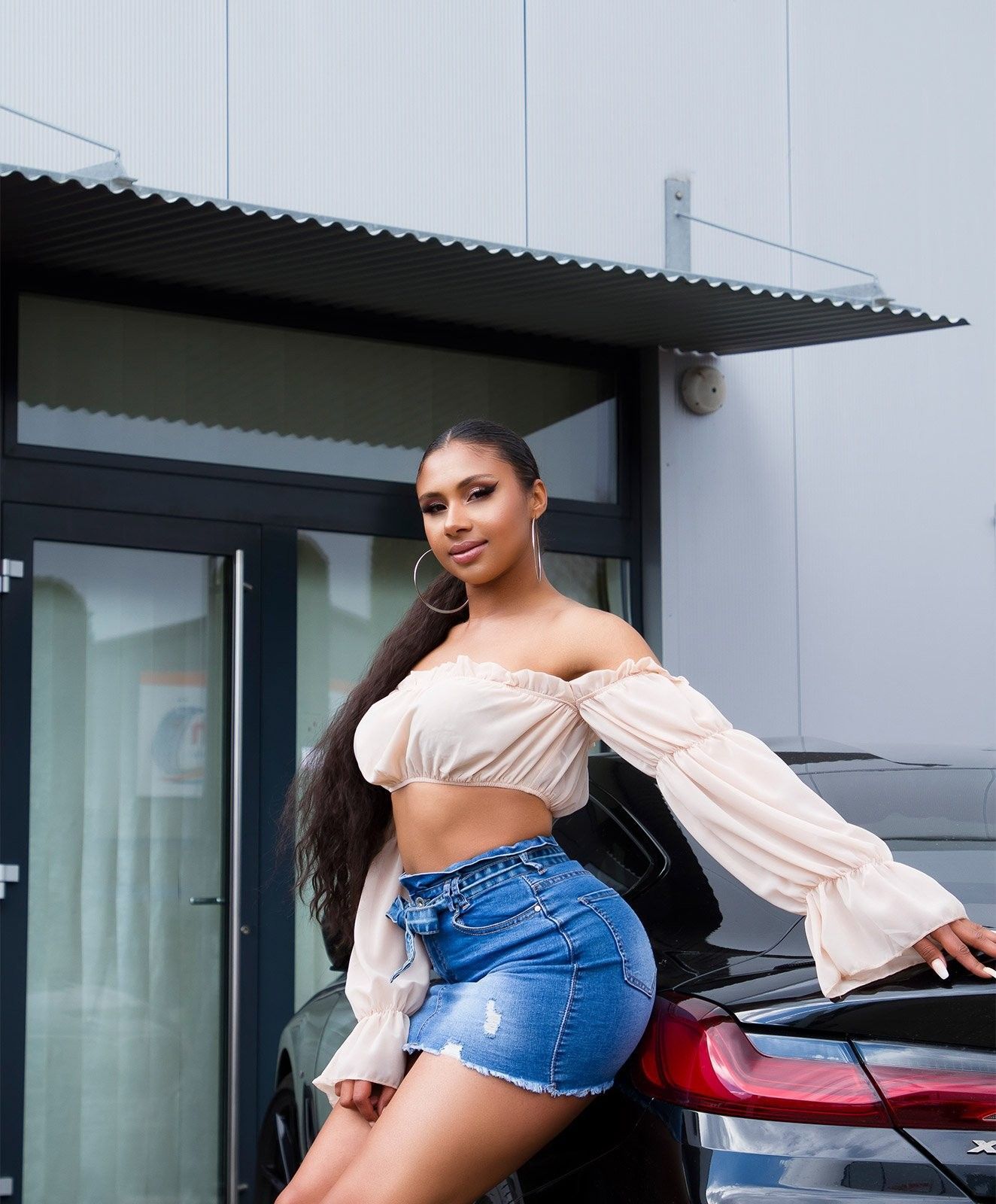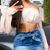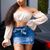 SeXy Miss Damen Girly Mini Rock High waist blau jeans XXS/32 XS/34 Vintage Saum