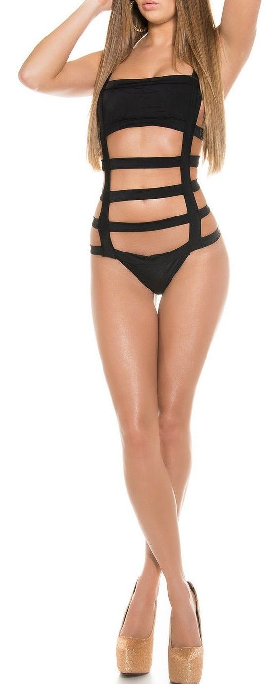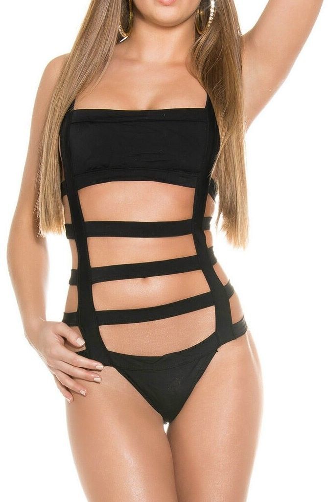 SeXy Miss Damen Girly Monokini Body Top Bikini out cut Look S 34 M 36 L 38 schwarz