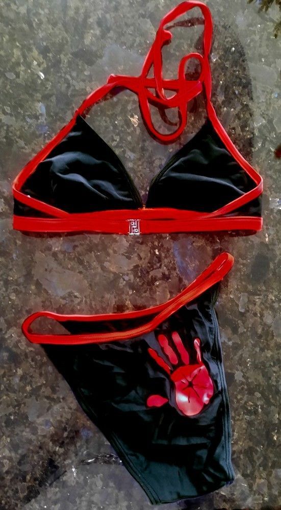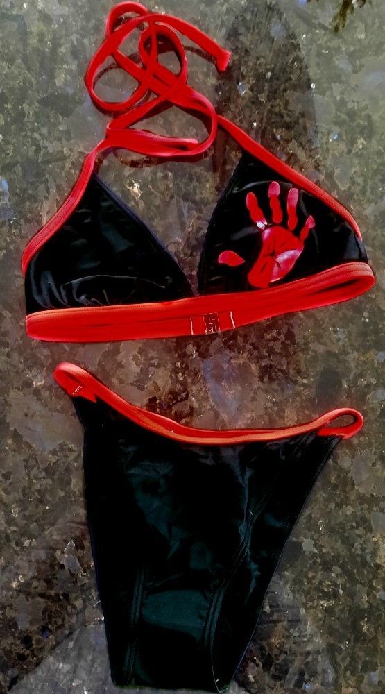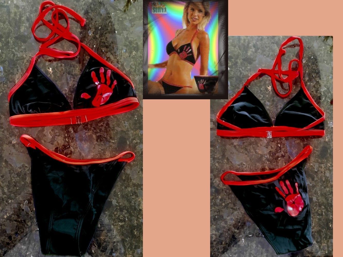 Stylischer Bikini Triangel Oberteil mit Handabdruck Rücken zum Schließen Träger im Nacken zum Binden Rückenbereich zum Binden figurbetonter Slip Po mit Handabdruck Sexy,verführerisch,exklusiv! auffälliges Strand-Highlight Eye Catcher Hot & Sexy In-Style Look _____________________________ Im Arti