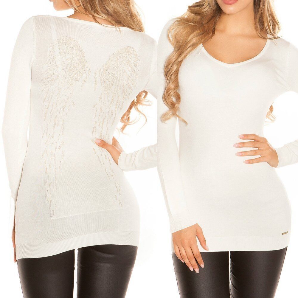 SeXy Miss Damen Girly Pullover Long Pulli Flügel Lurex Feinstrick Pulli XS/ S crem