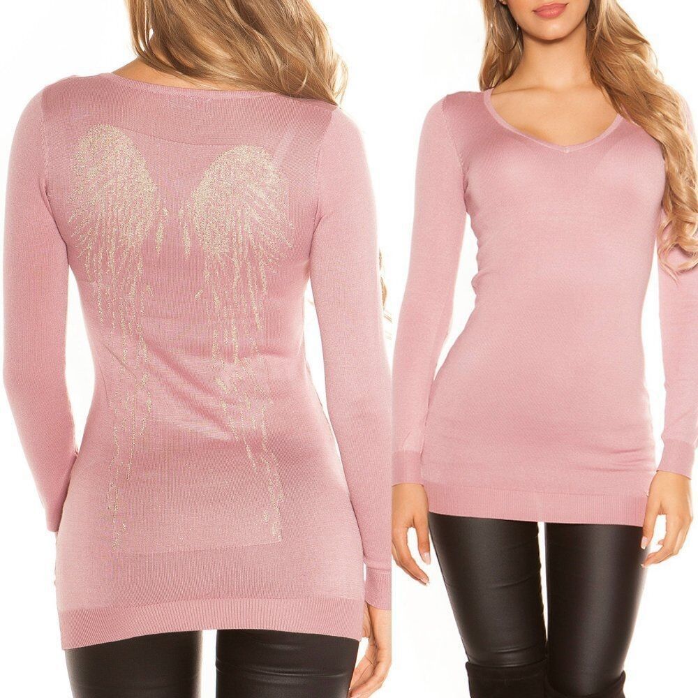 SeXy Miss Damen Girly Pullover Long Pulli Flügel Lurex Feinstrick Pulli XS/ S rosa