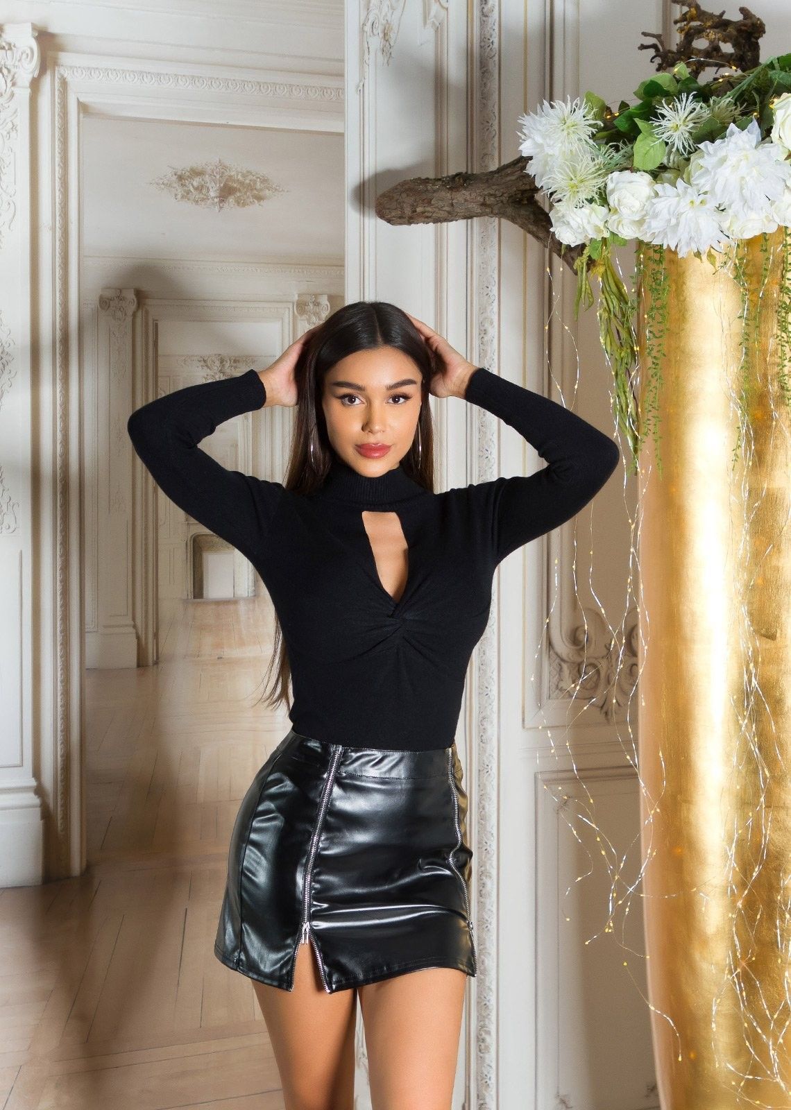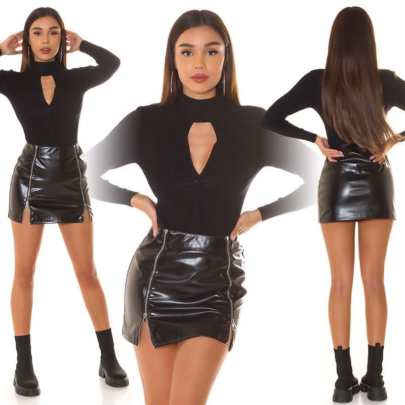 SeXy Miss Damen Girly Pullover Out Cut Wickel Look Strickpulli 34/36/38 schwarz