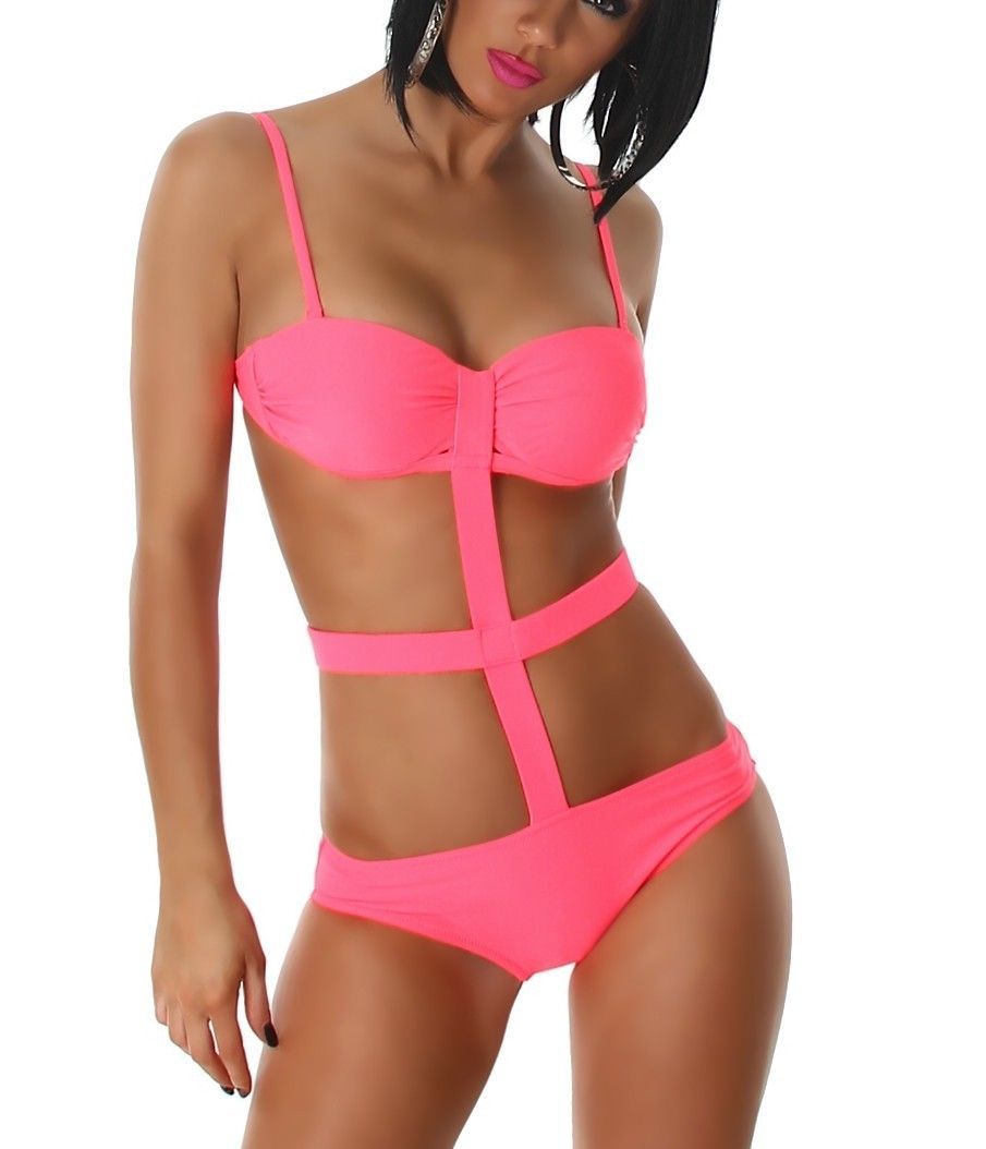 SeXy Miss Damen Girly Push up Monokini Bikini Strand Urlaub apricot 40