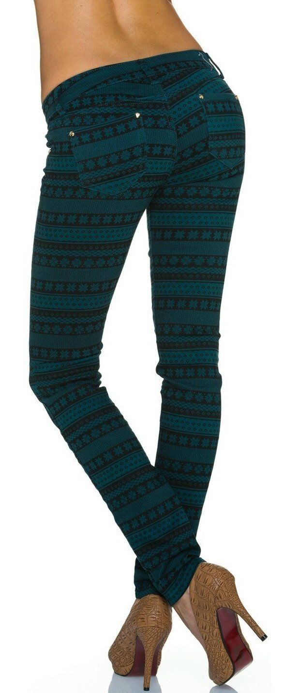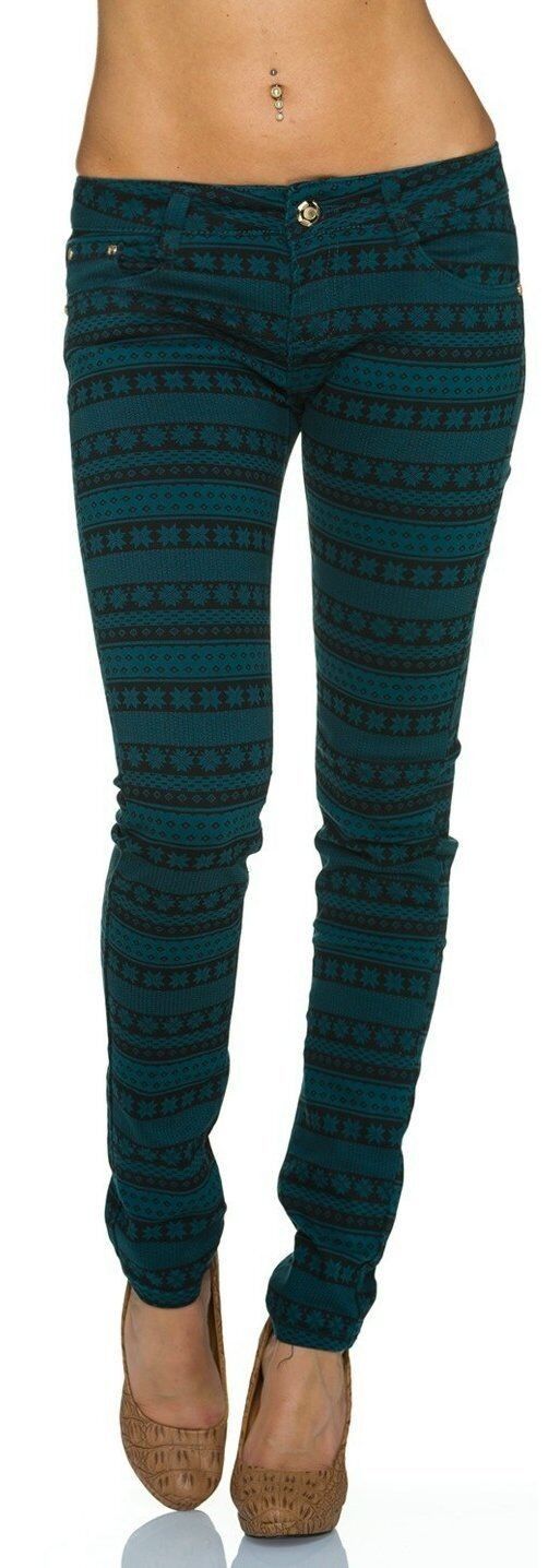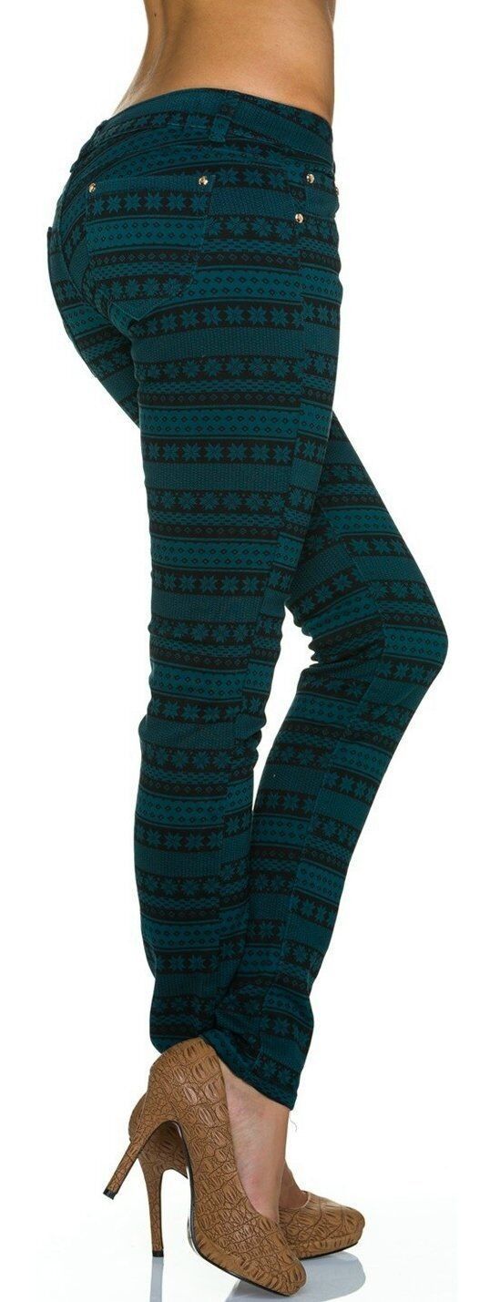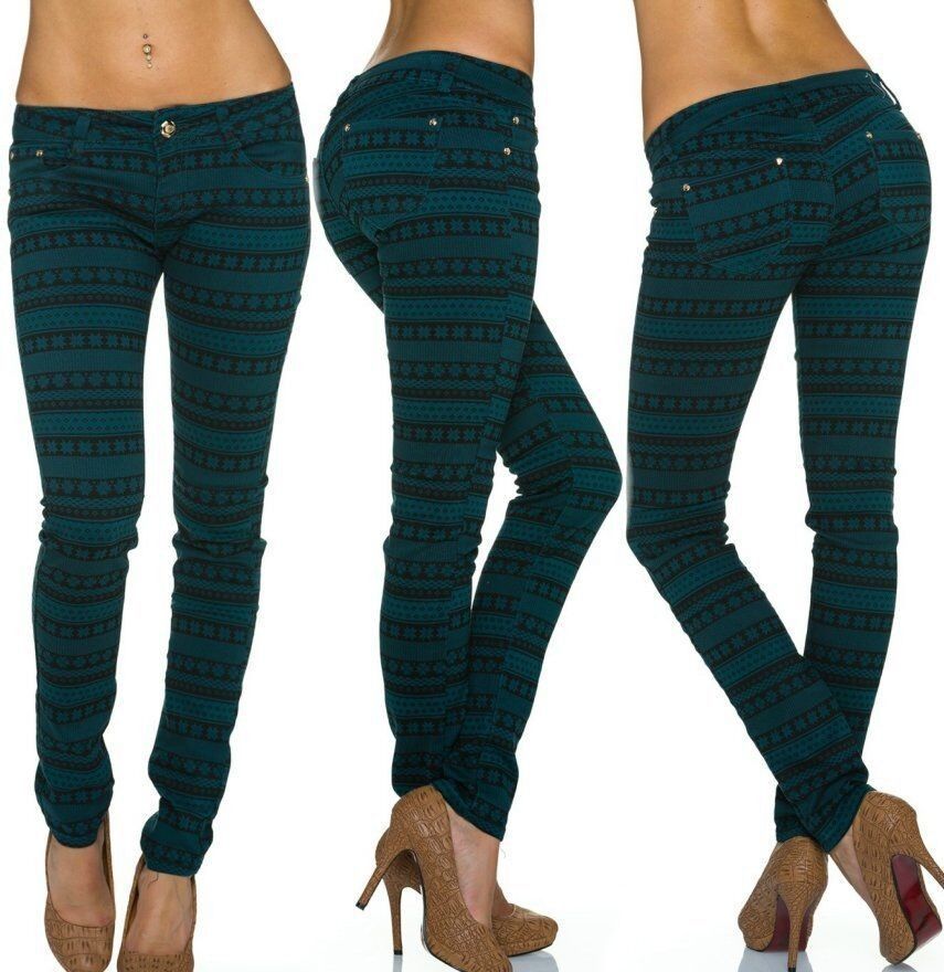 SeXy Miss Damen Girly Röhre Hüft Hose grün schwarz Norweger Muster XS 32 Neu
