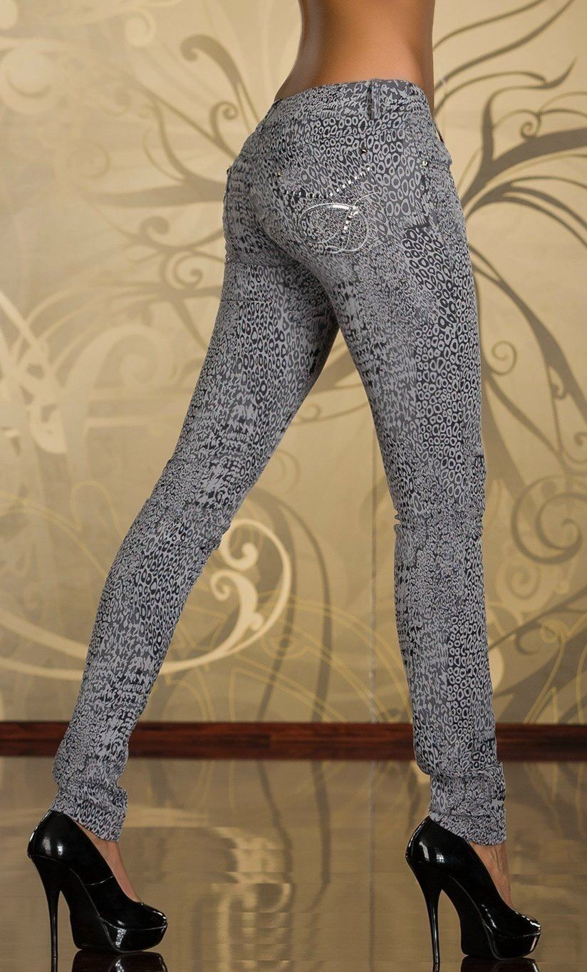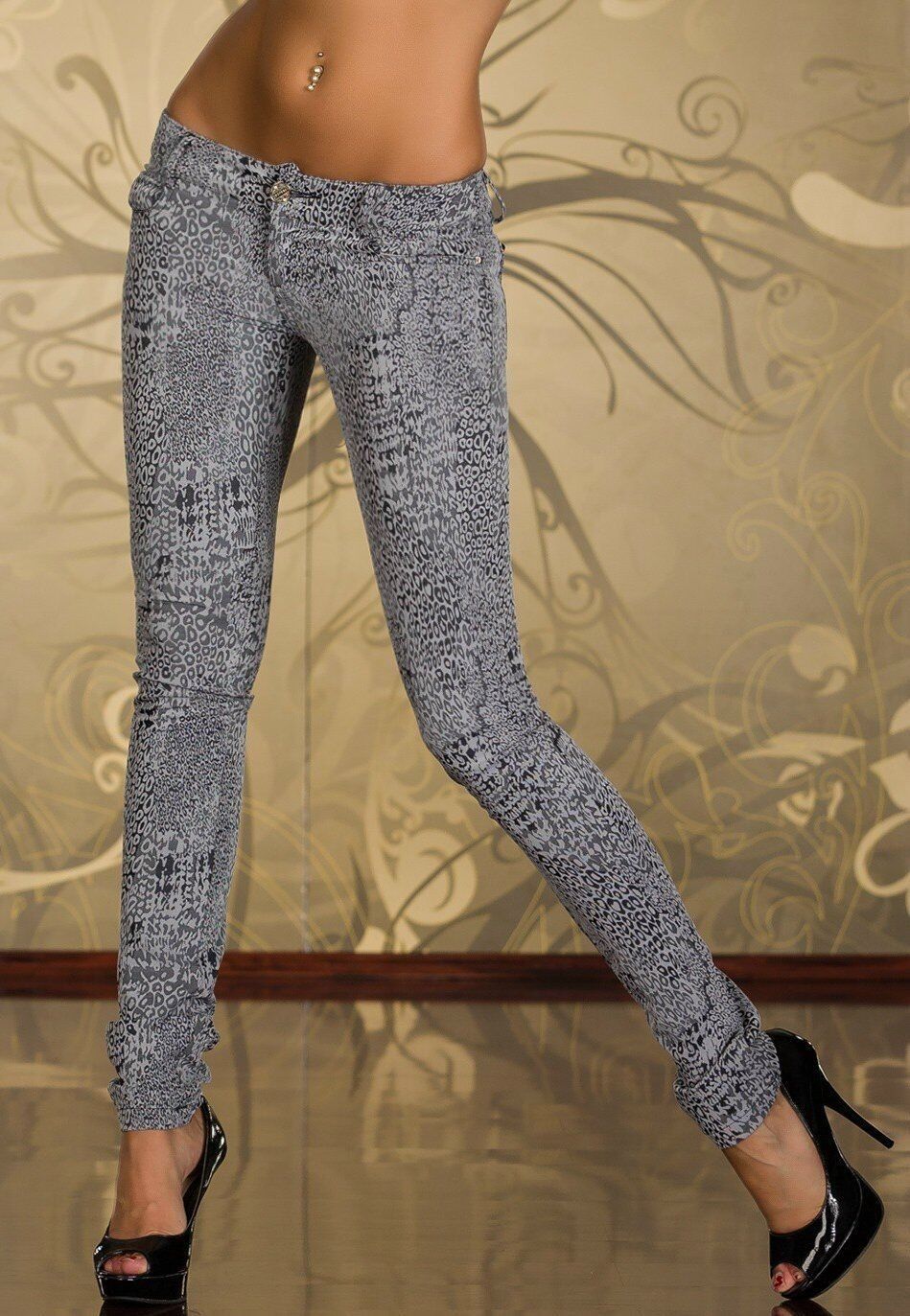 SeXy Miss Damen Girly Snake Hüft Hose Trend Röhre grau Nieten Silber L 38 XL 40
