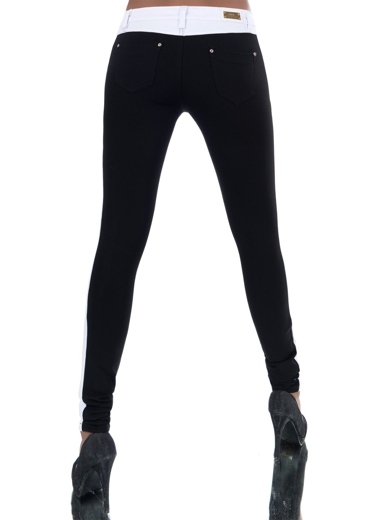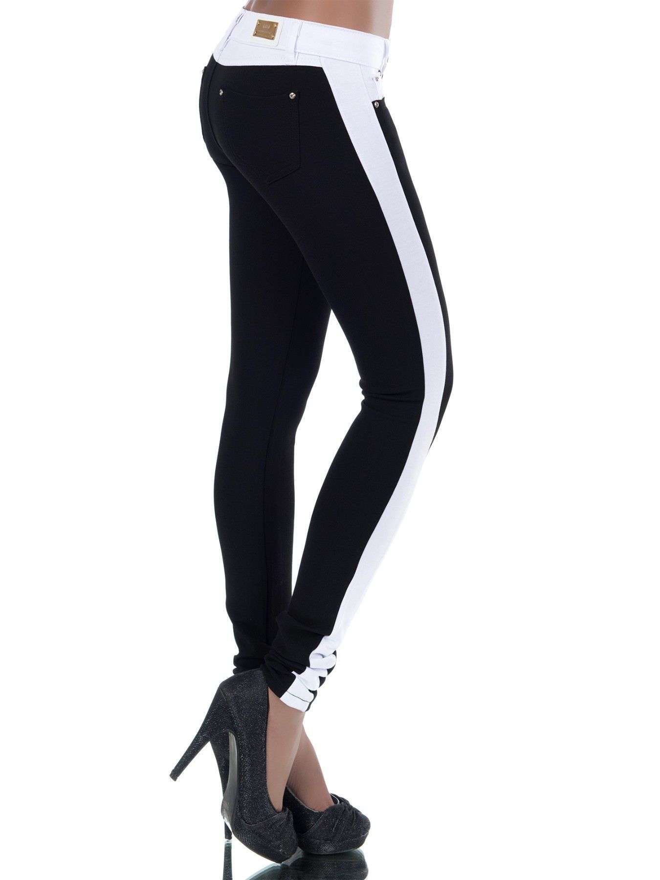 SeXy Miss Damen Girly Stoff Hose Stretch Trekking Skinny weiß schwarz XS 32 Neu