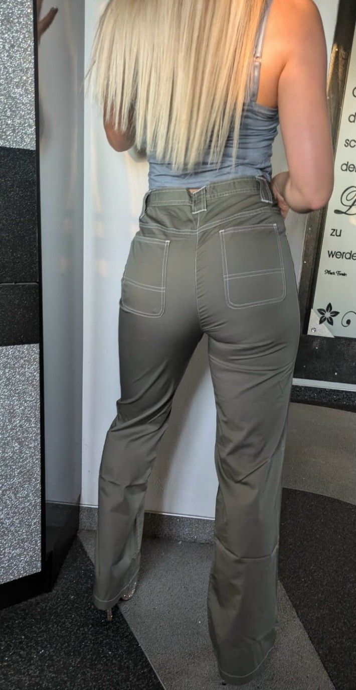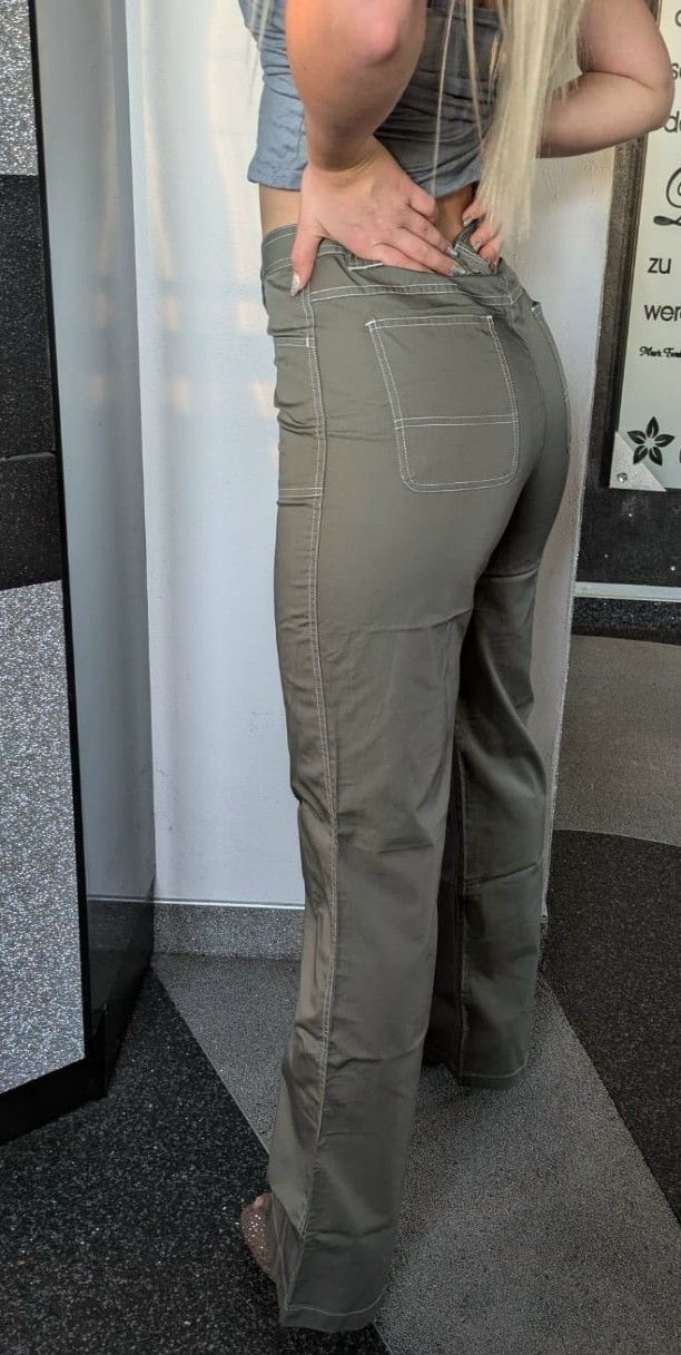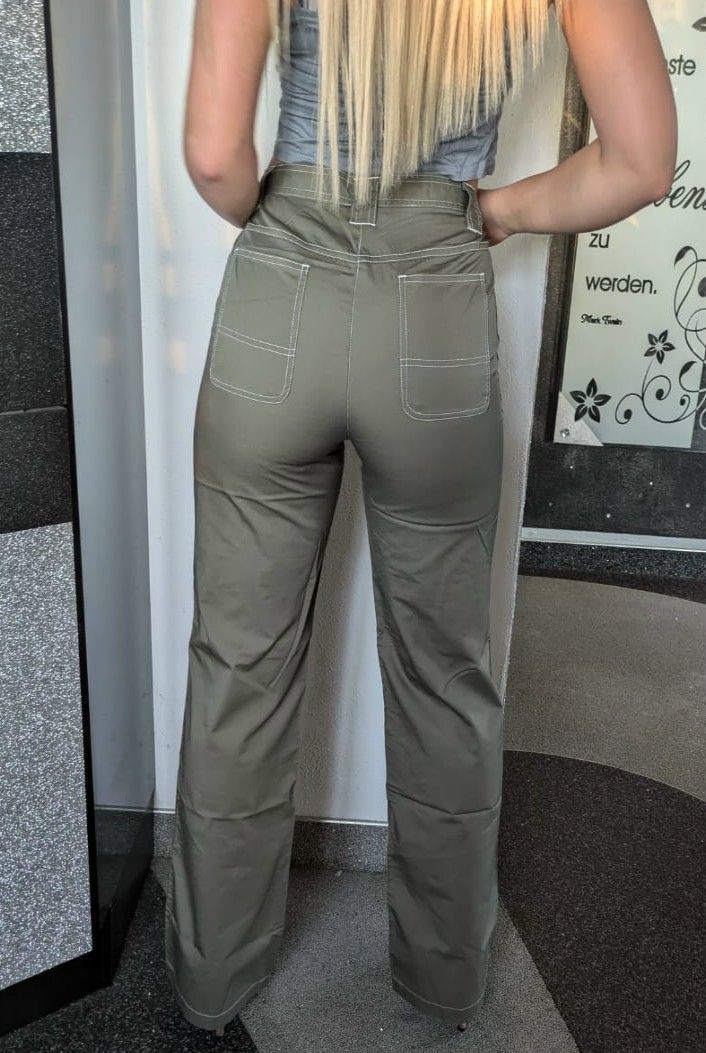 SeXy Miss Damen Girly Stoff Hose Ziernähte Trendy 36 38 olive Neu