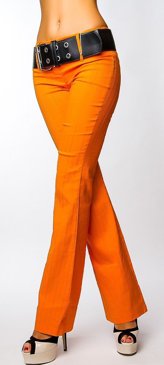 SeXy Miss Damen Girly Stoff Hüft Hose LoW CuT NadelStreifen orange IT 46 DE 40