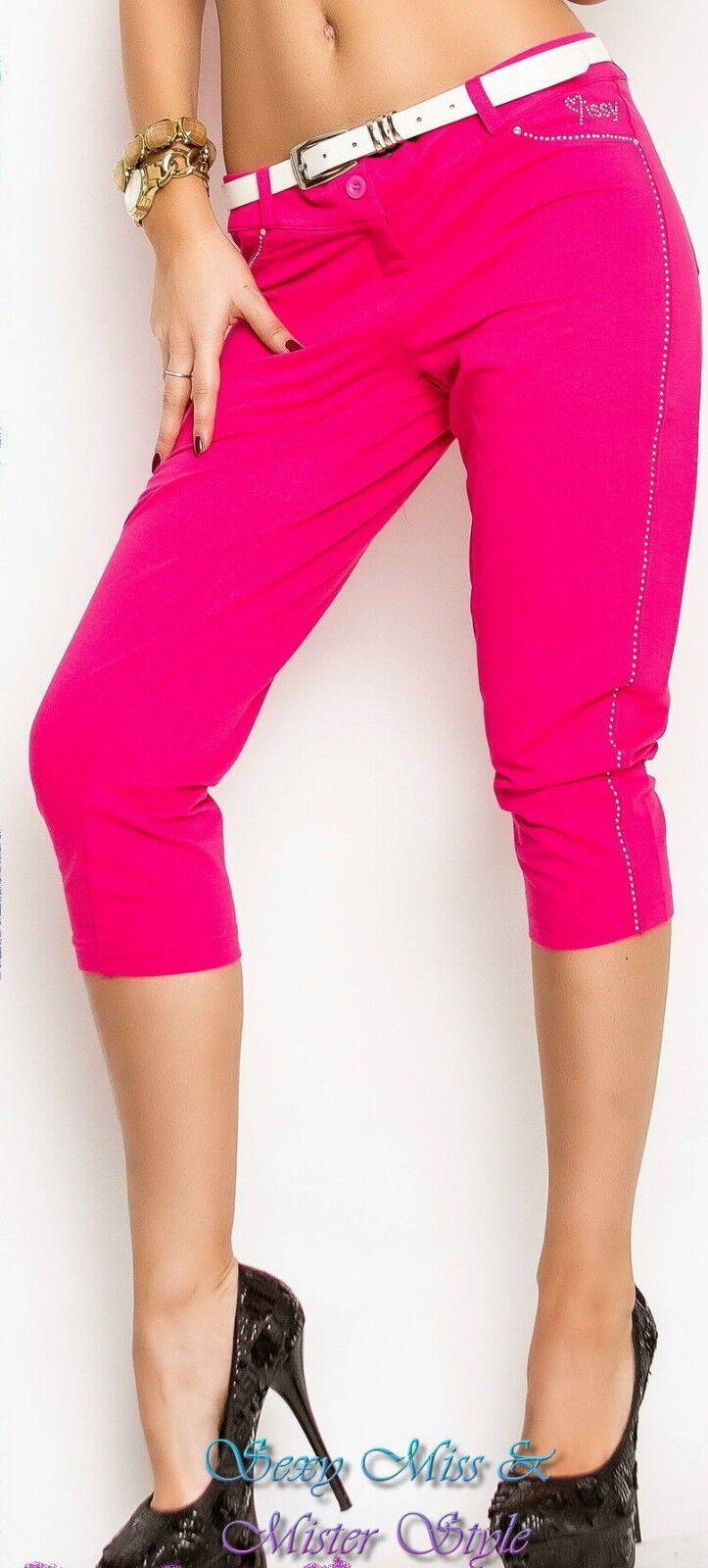 Sexy Miss Damen Girly Strass Jogging capri Hose Fitness S/ M M/ L pink NEU