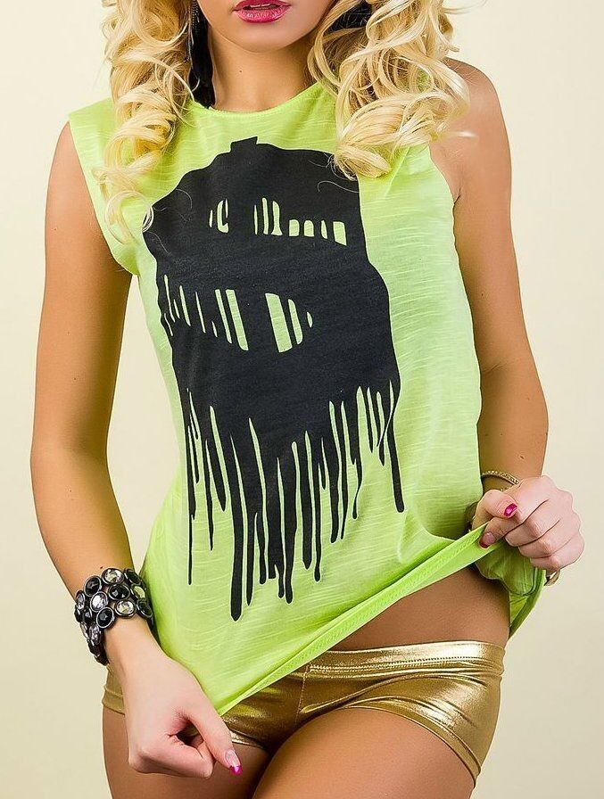 Armelloses Oberteil im Retro Schnitt durch nicht eingesäumte Arm Auschnitt Kanten Tanktop vorne Rundhals auffälliges Print Design vorne kürzer hinen länger elastisches Material Eye Catcher Hot & Sexy In-Style Look _____________________________ Im Artikel steht Französische Größe Maße in ungedehn