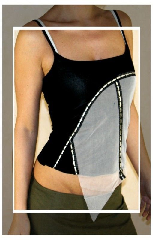 kurz geschnittenes Träger Top mit mit Netz und Band verziert figurbetonter Schnitt elastisches Material Eye Catcher Hot & Sexy In-Style Look _____________________________ Im Artikel steht Französische Größe Maße in ungedehnten Zustand locker liegend einfache Weite in cm Toleranz + - 2 cm Französ