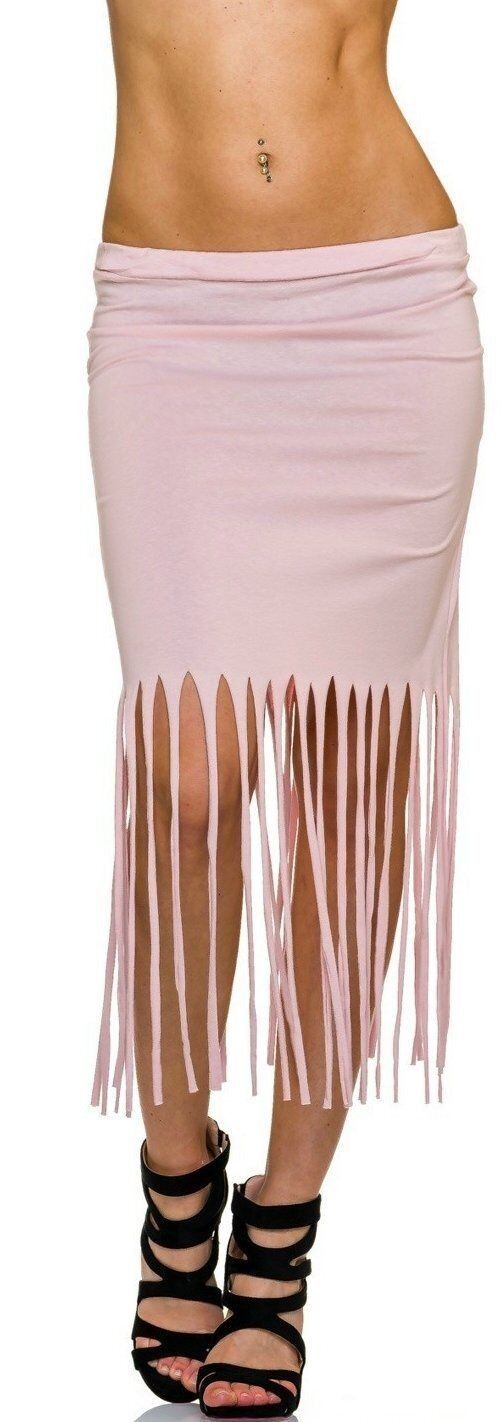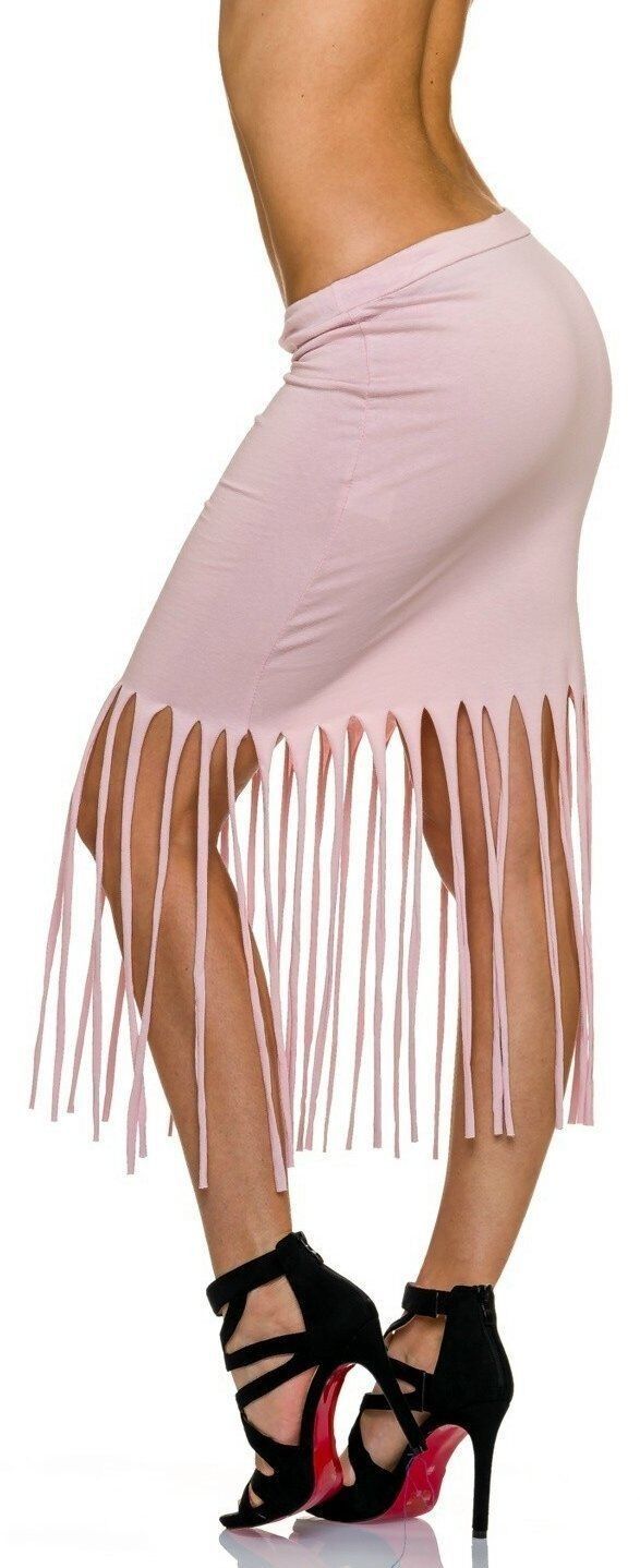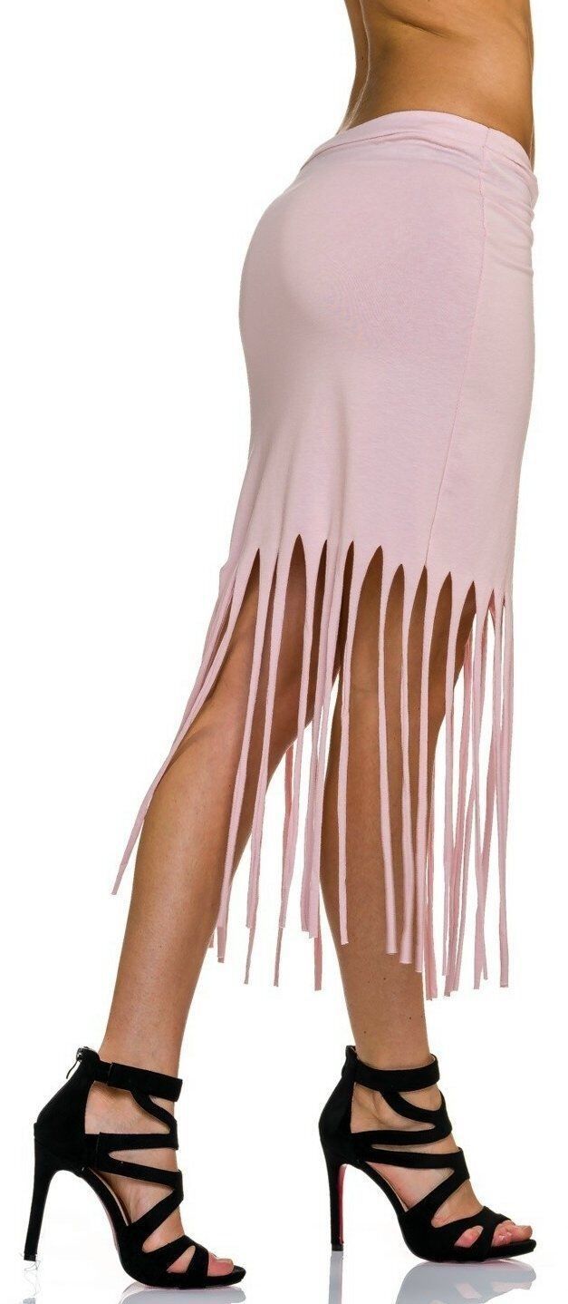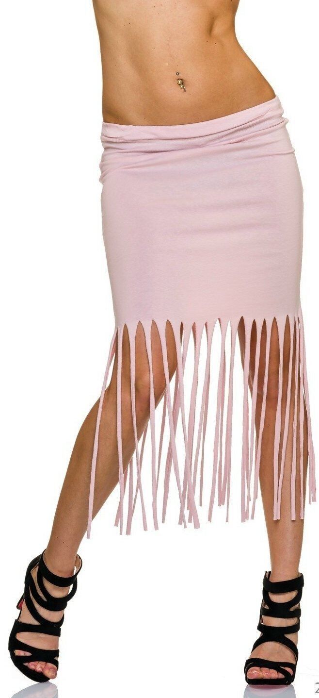SeXy Miss Damen Girly Trend Midi Pencil Schlitze Fransen Hüft Rock 34/36/38 rosa