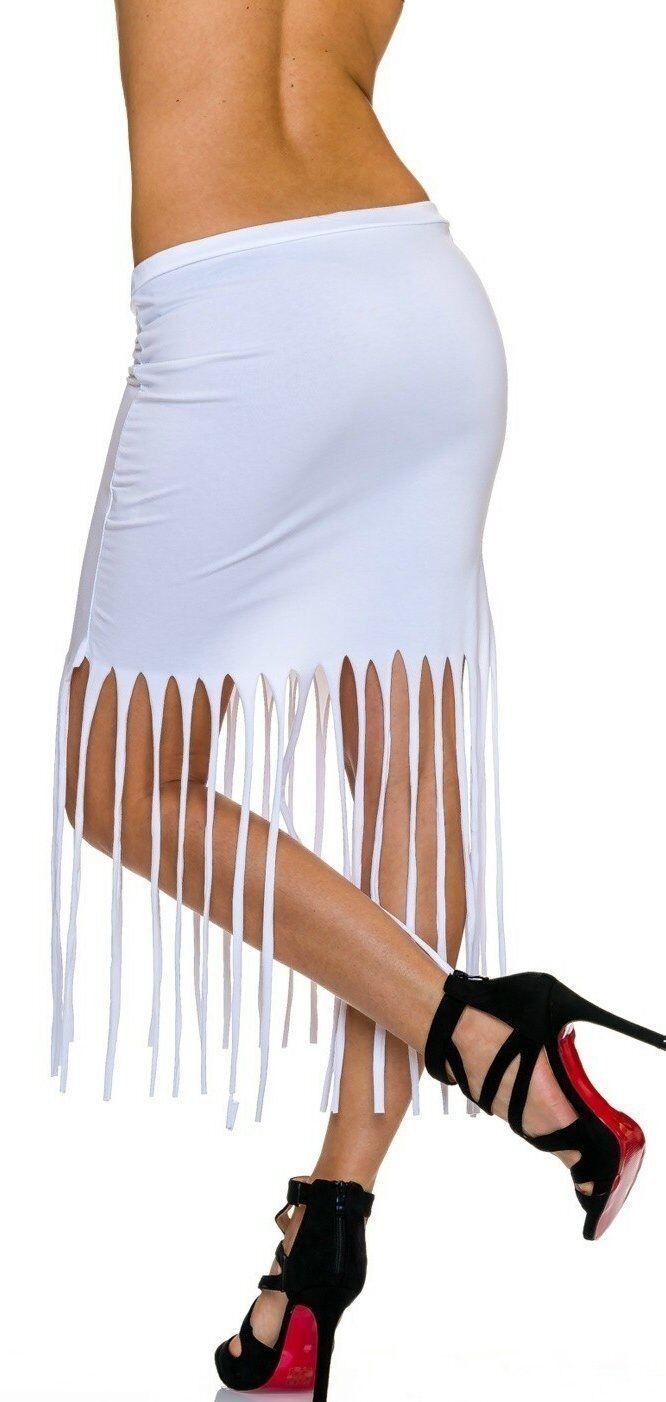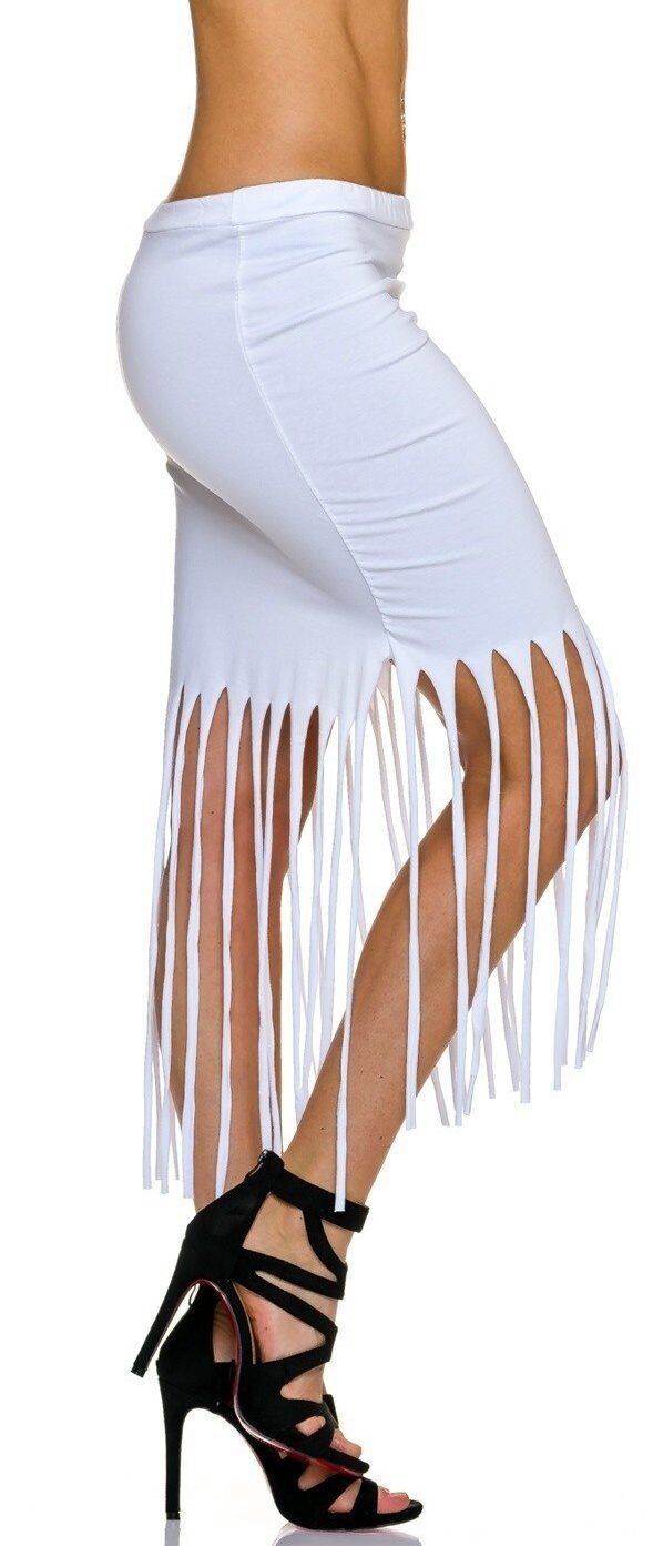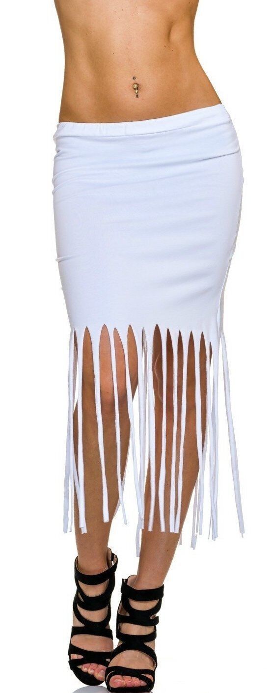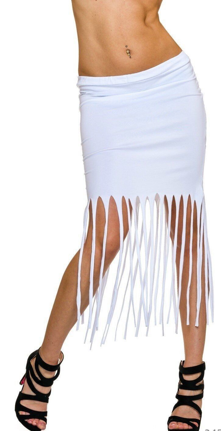 SeXy Miss Damen Girly Trend Midi Pencil Schlitze Fransen Hüft Rock 34/36/38 weiß