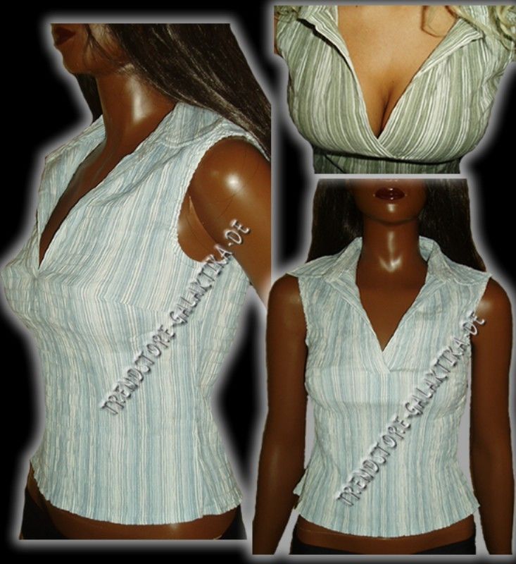 Stylisches Blusen Top Hemdkragen V-Ausschnitt Material rafft sich zusammen Streifendesign elastisches Material figurbetonter Schnitt Eye Catcher Hot & Sexy In-Style Look _____________________________ Im Artikel steht Deutsche Größe Maße in ungedehnten Zustand locker liegend einfache Weite in cm