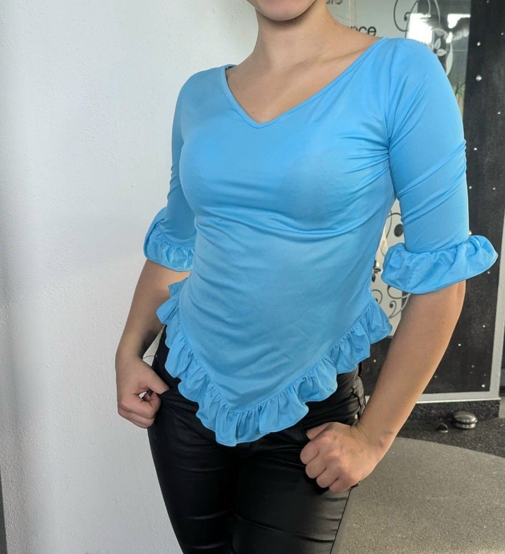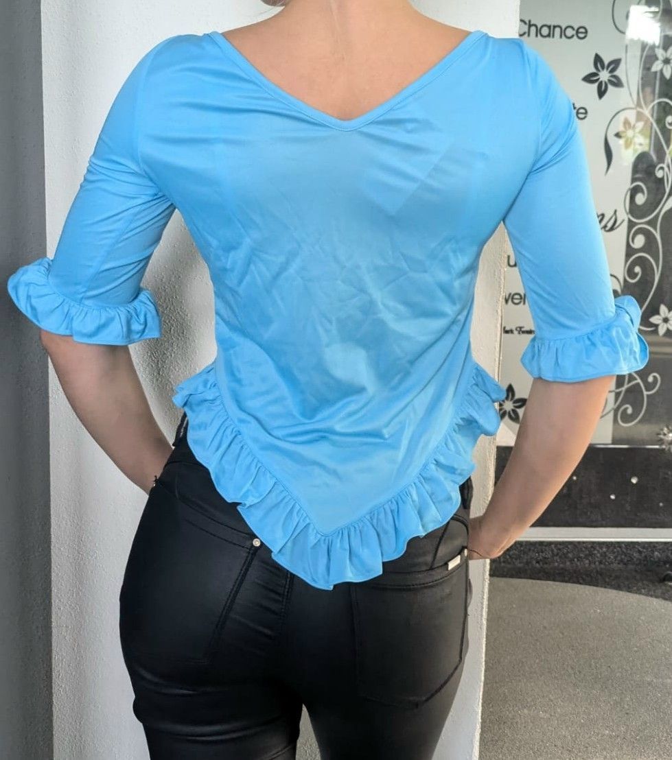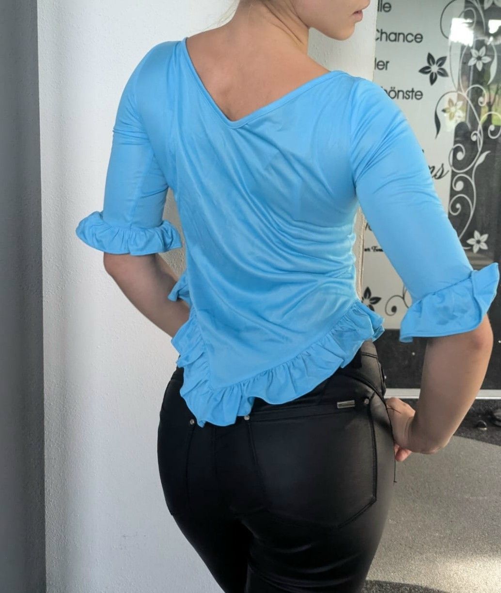 Sexy Miss Damen Girly V Top Volant Shirt asymmetrisch halbarm 34 36 Neu blau