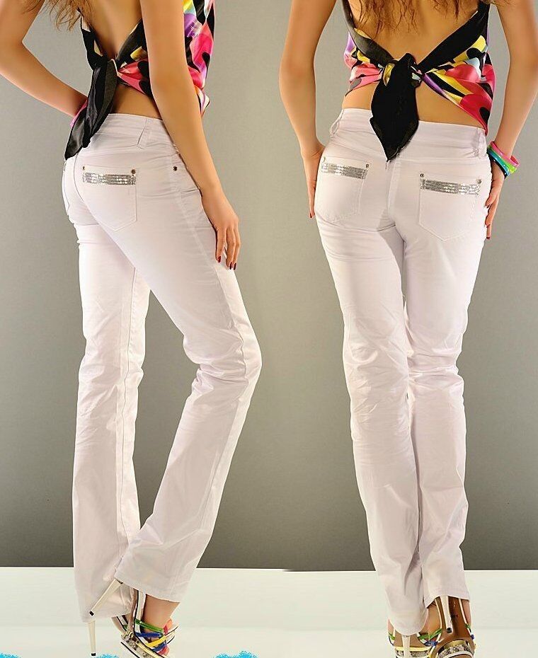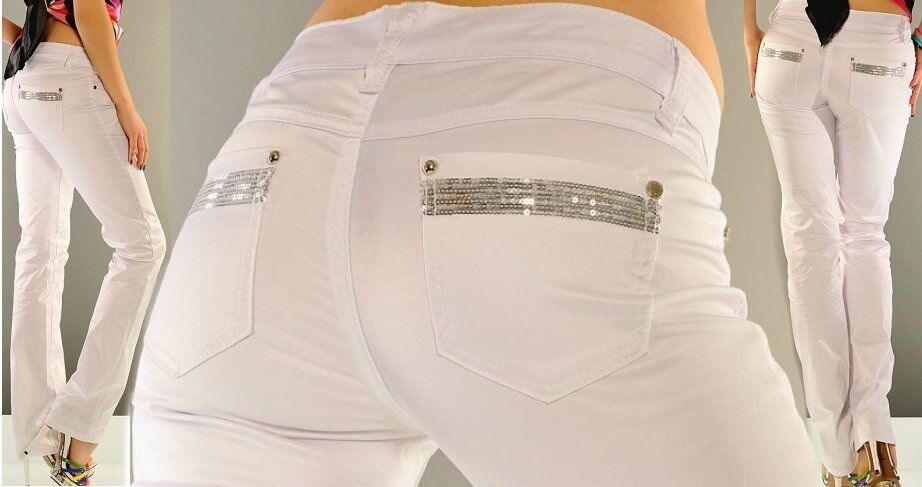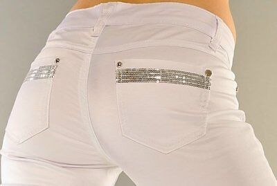 SeXy Miss Damen Glamour Hüft Hose satin glanz Pailletten weiß 32 34 36