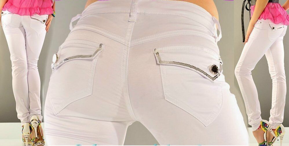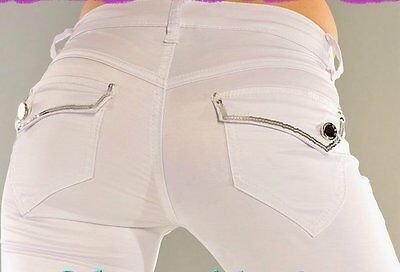 SeXy Miss Damen Glamour Hüft Hose satin glanz Pailletten weiß 32 34 36 38