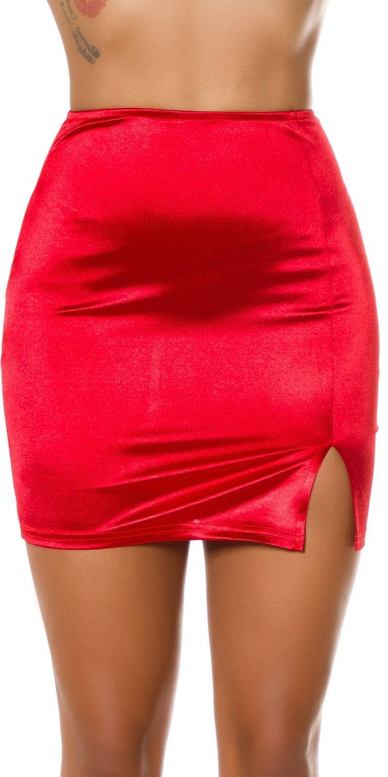 SeXy Miss Damen Highwaist Mini Rock Schlitz Satin glanz S 34 M 36 L 38 rot Neu