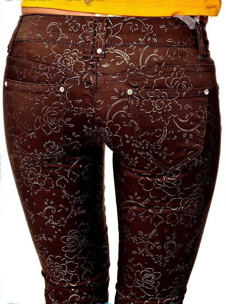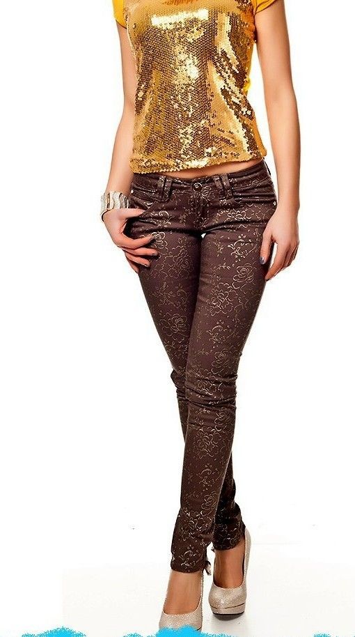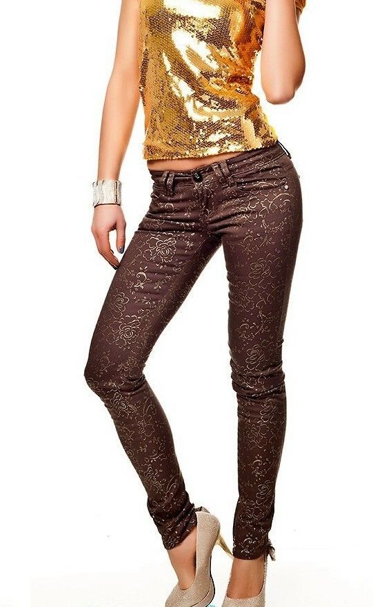 SeXy Miss Damen Hüft Jeans Hose Röhre Flower braun gold 34 S Neu