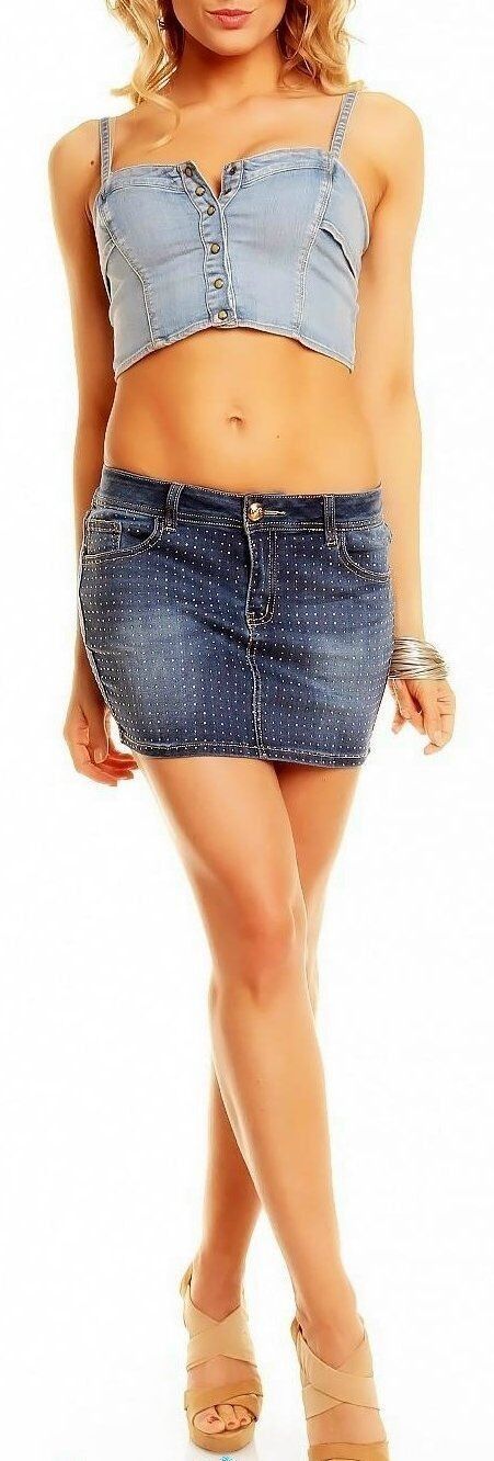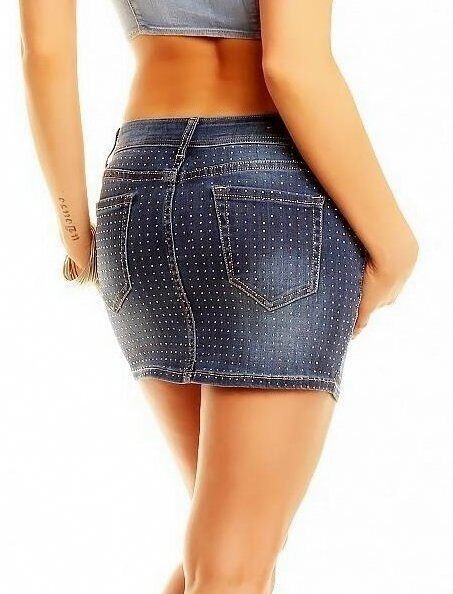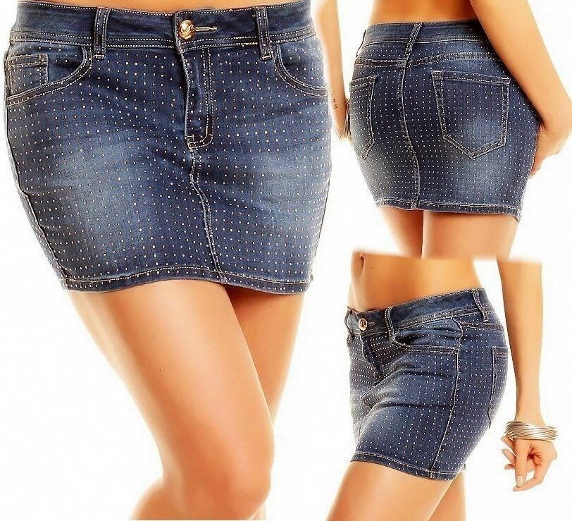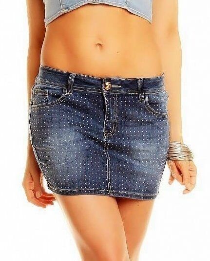 SeXy Miss Damen Hüft Jeans Mini Rock Girly Nieten gold XS 32 S 34 M 36 L 38 blau