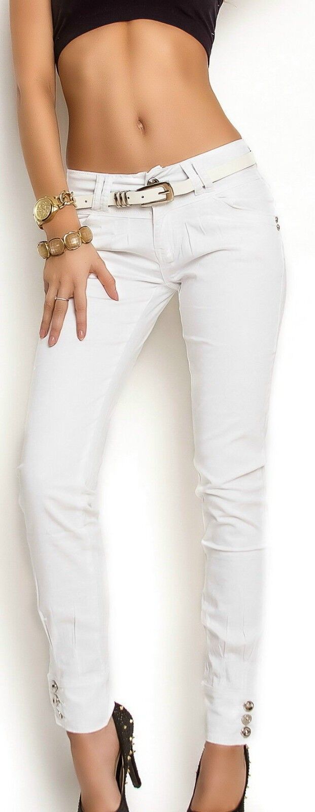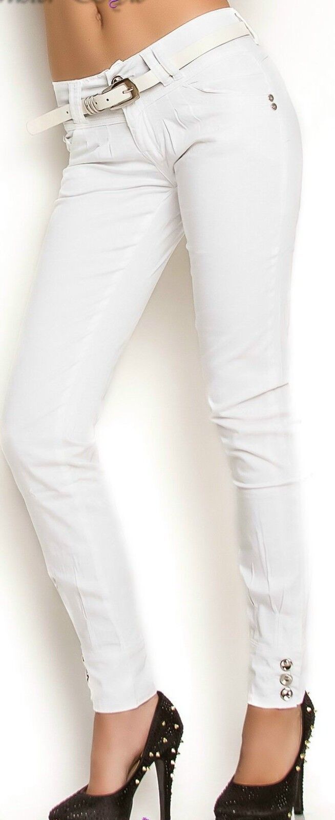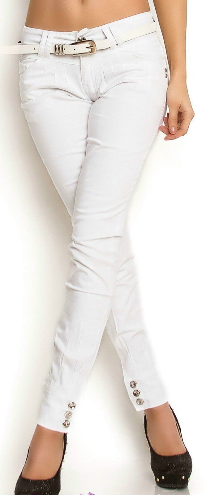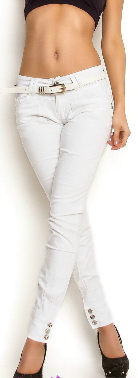 SeXy Miss Damen Hüft Jeans Pump Hose Low cut Falten Gürtel 36 38 40 M L XL weiß