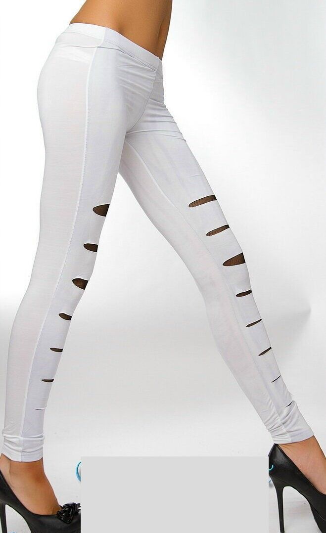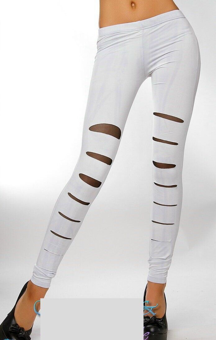 Sexy Miss Damen Hüft Leggings retro Risse Netz weiß schwarz M/ L 36/38 L/ XL 38/40