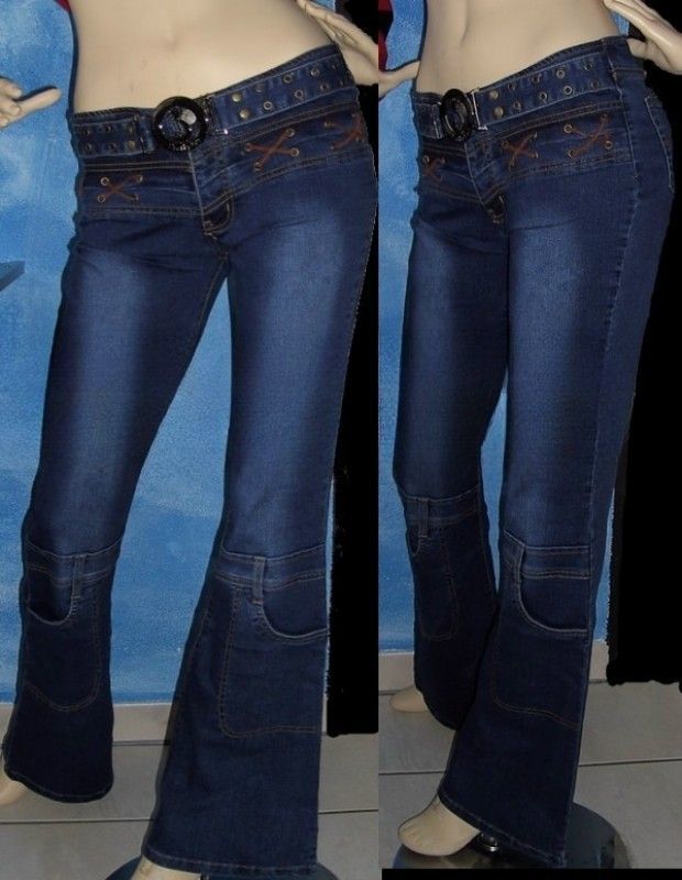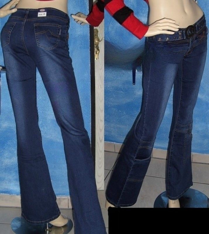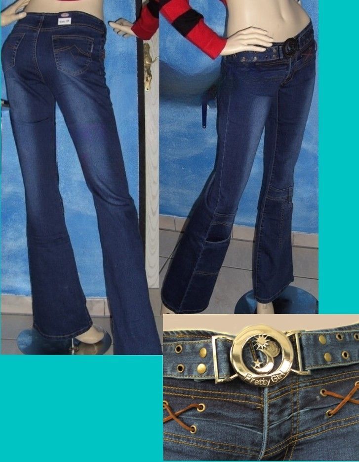 Figurbetonte Hüft Jeans Ziernähte , Bindebänder Knopf und Reisverschluss Gürtellook, Lochnieten Beintaschen figurbetonter Schnitt Eye Catcher Hot & Sexy In-Style Look _____________________________ Im Artikel steht Französische Größe Maße in ungedehnten Zustand locker liegend einfache Weite in cm