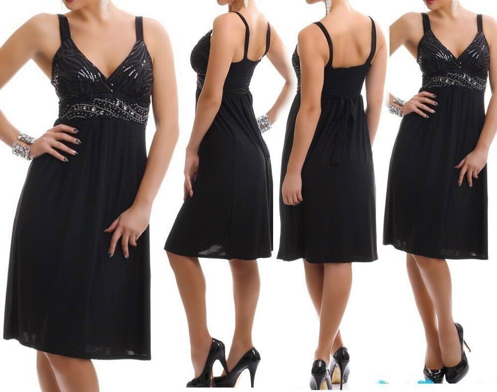 SeXy Miss Damen Kleid Glitzer Steine Dekollete Edel Dress 34/36 S/ M schwarz TOP NEU
