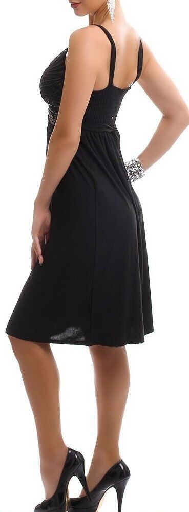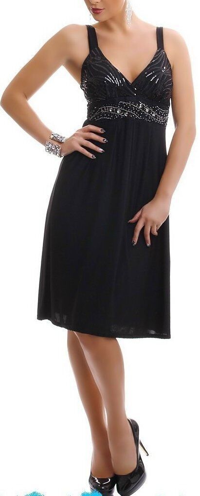 Glamouröses knielanges Kleid Dress mit Trägern wattierter Form Cup Push up Dekollete V-Ausschnitt Edel Pailletten und Steinchen verziert gesmokterRückenbereich Taille figurbetont mit Bänder zum Binden elastisches Material Eye Catcher Pur Hot & Sexy In-Style Look _____________________________ Im