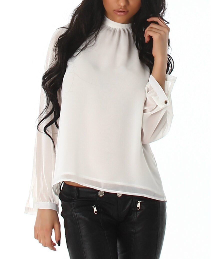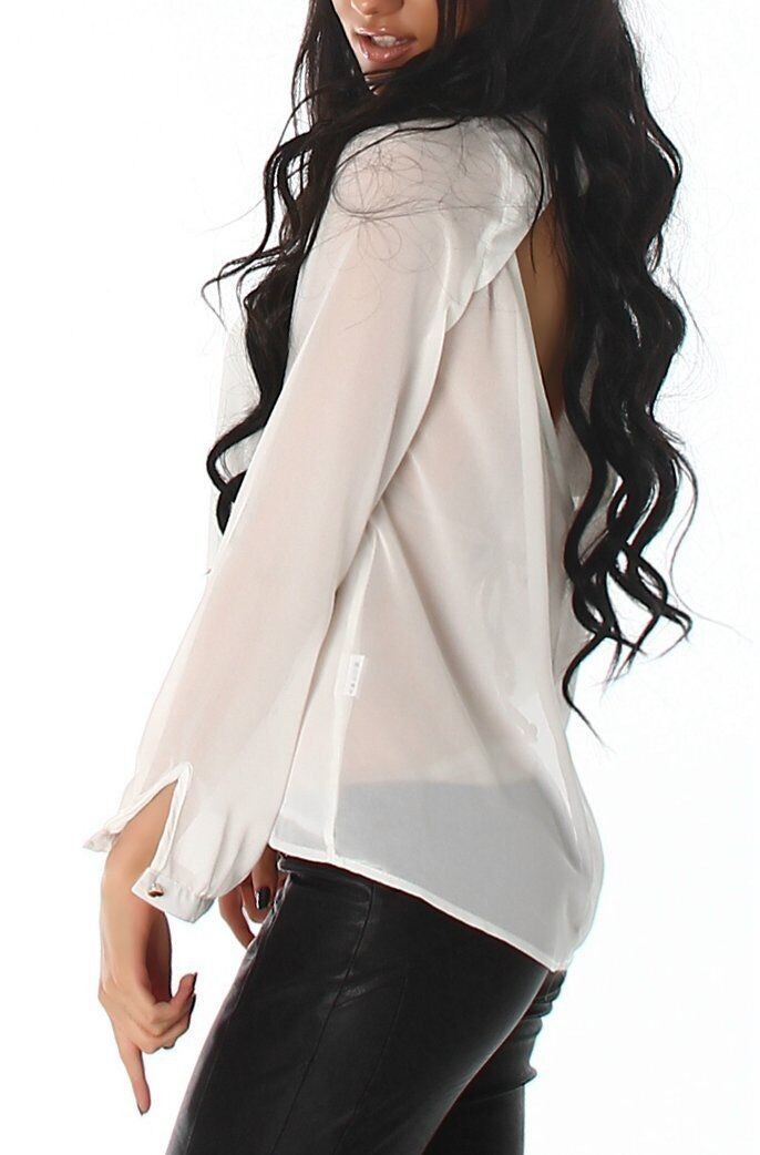 SeXy Miss Damen Langarm transparent Bluse Top Rücken offen creme 36 NEU