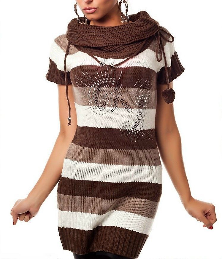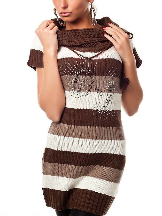 SeXy MiSS Damen Long Pulli Rolli Strick Pullover Streifen Strass 34/36/38 Neu