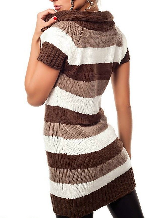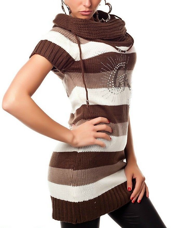 stylischer Strick Pullover Glamour Strass Look Long Pulli mit breitem Rolli Kurzarm Blockstreifen Design Perlen Band verzierung Rippenstrickabschlüsse an Ärmel, Saum und Ausschnitt elastisches Material Eye Catcher Hot & Sexy In-Style Look _____________________________ Einheitsgröße - Uni - Ohne