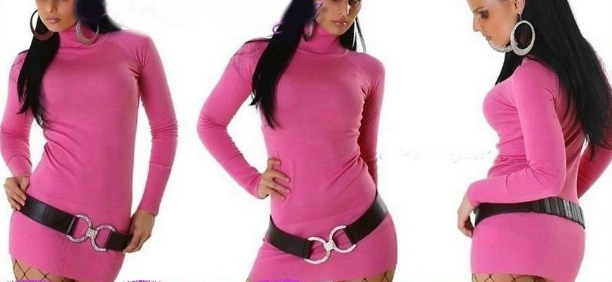 SeXy Miss Damen Long Pulli Rollkragen Fein Strick Rolli Pullover salamon pin 34/36/38