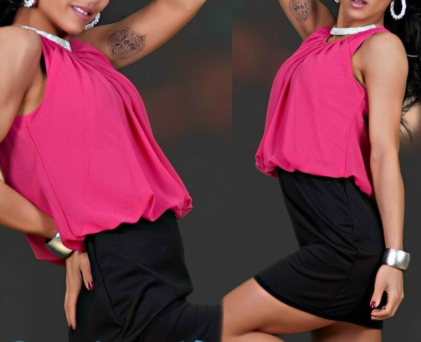 SeXy Miss Damen Mini Kleid Chiffon Pump Dress S/ M 34/36 M/ L 36/38 Schwarz Pink