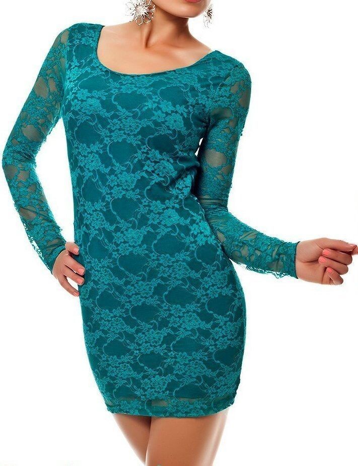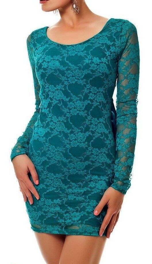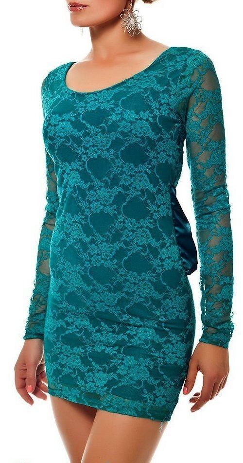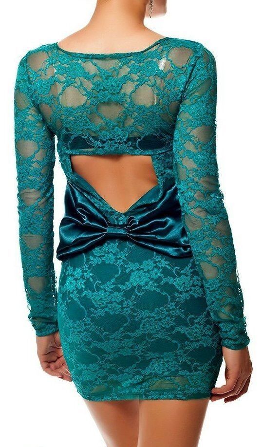 SeXy MiSS Damen Mini Kleid Edel Spitze Dress Satin Schleife 34/36/38 petrol Top