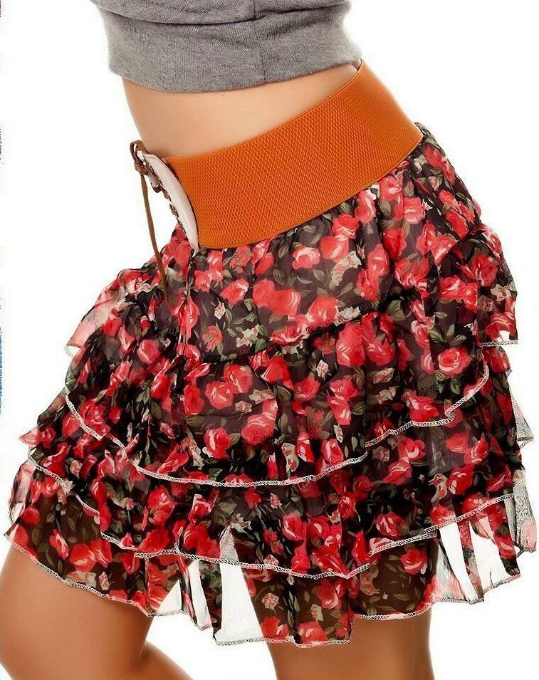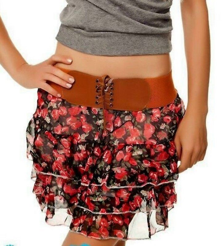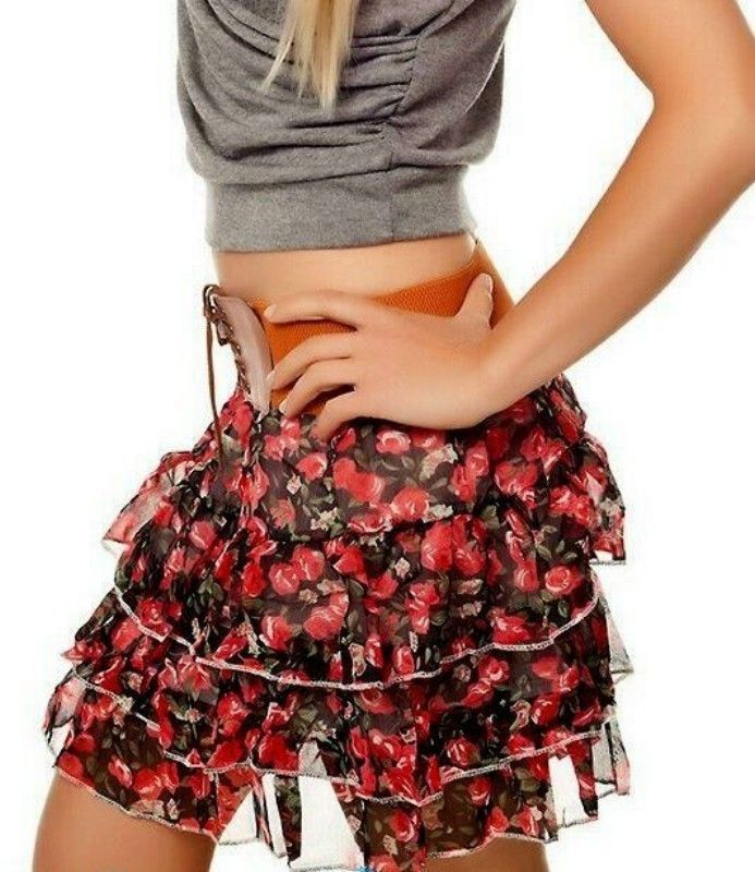 SeXy Miss Damen Mini Rock Flower Volant Stufen Corsagen Gürtel XS-S Girly STYLE