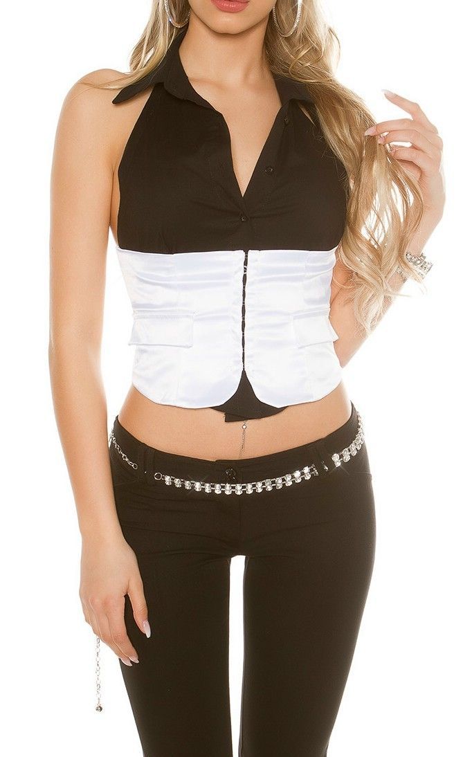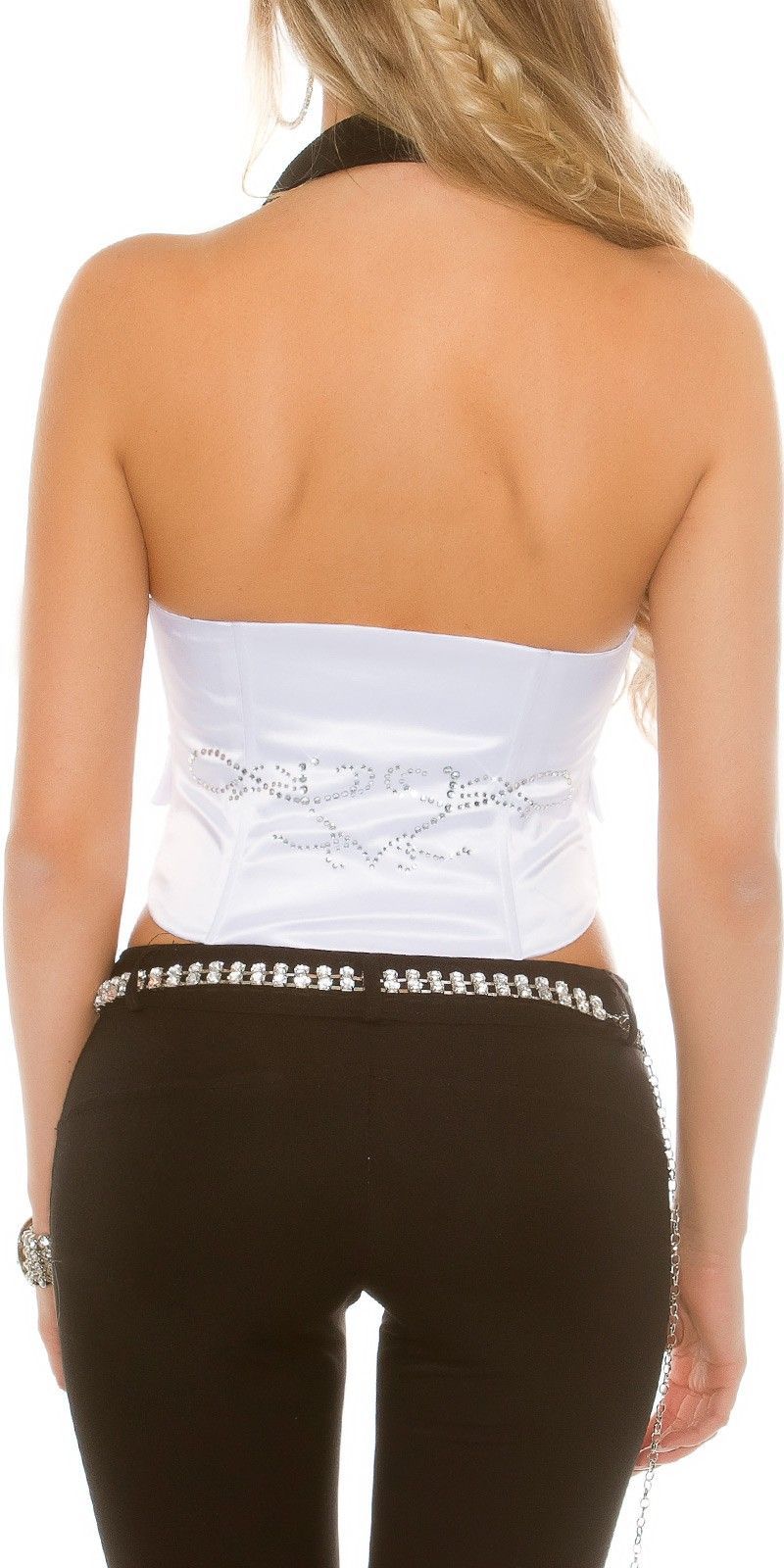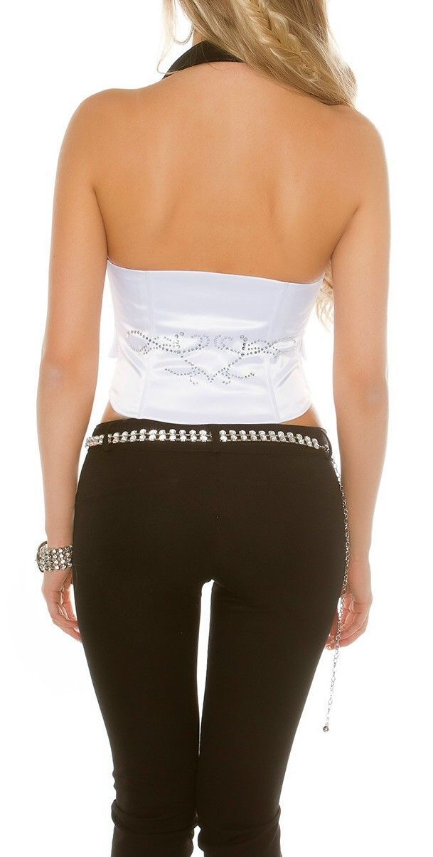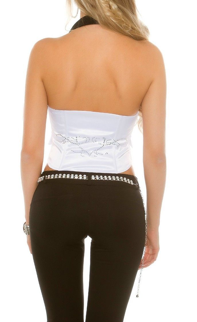 SeXy Miss Damen Neck Hemd Corsage Top Satin Strass S 34 M 36 L 38 weiß schwarz