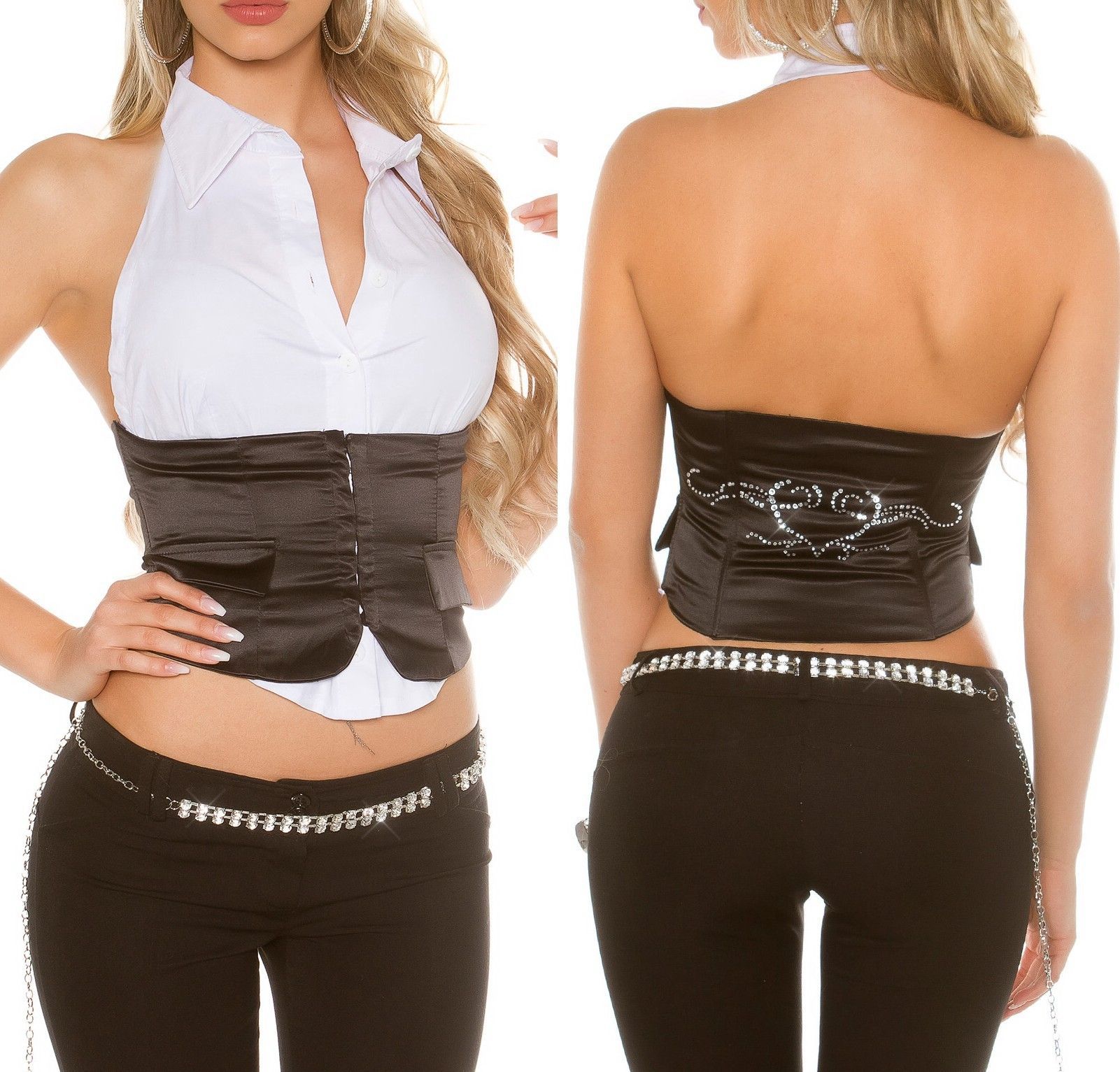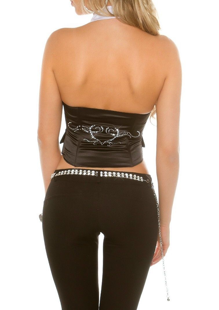 SeXy Miss Damen Neck Hemd Corsage Top Satin Strass S 34 M 36 schwarz weiß