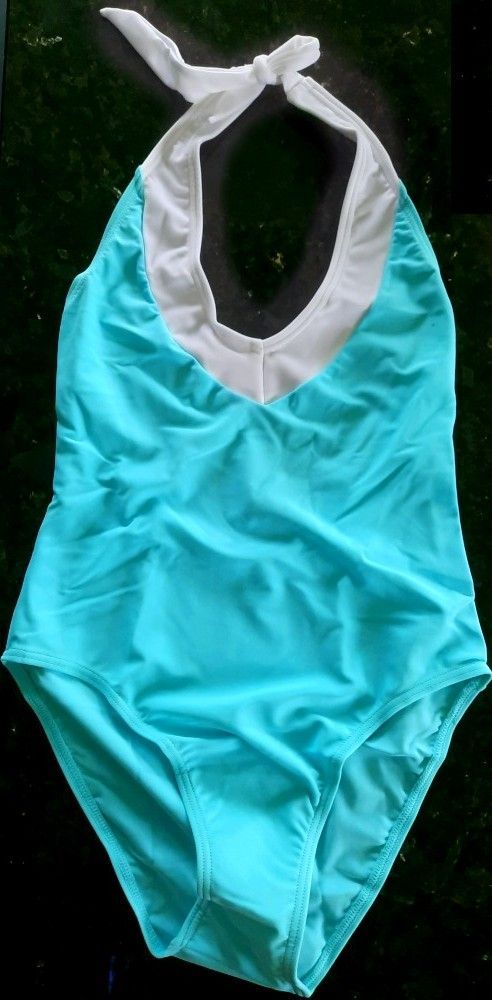 Sexy Miss Damen Neckholder Badeanzug V-Dekollte Marke DUPONT 34 XS NEU blau weiß