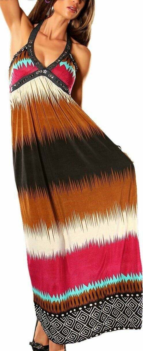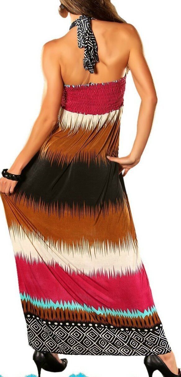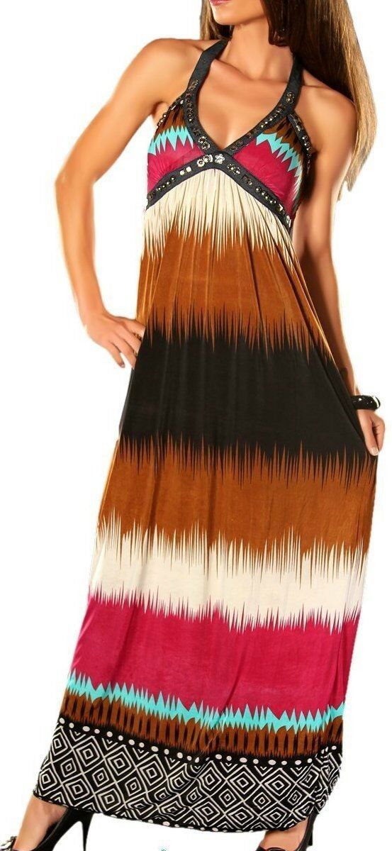 SeXy Miss Damen Neckholder Maxi Kleid Glamour Steine Freesize 34/36/38 bunt