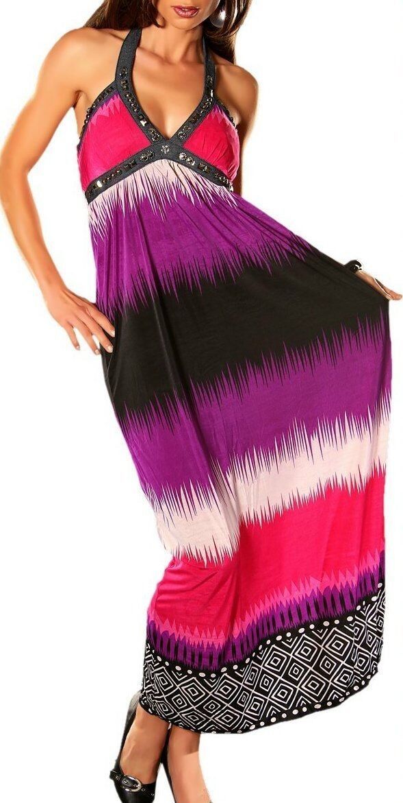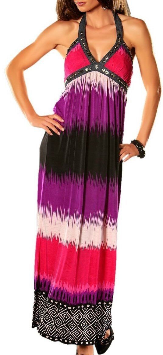 SeXy Miss Damen Neckholder Maxi Kleid Glamour Steine Freesize 34/36/38 mehrfarbig