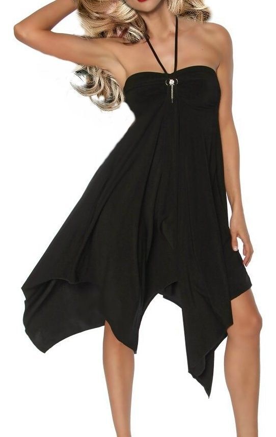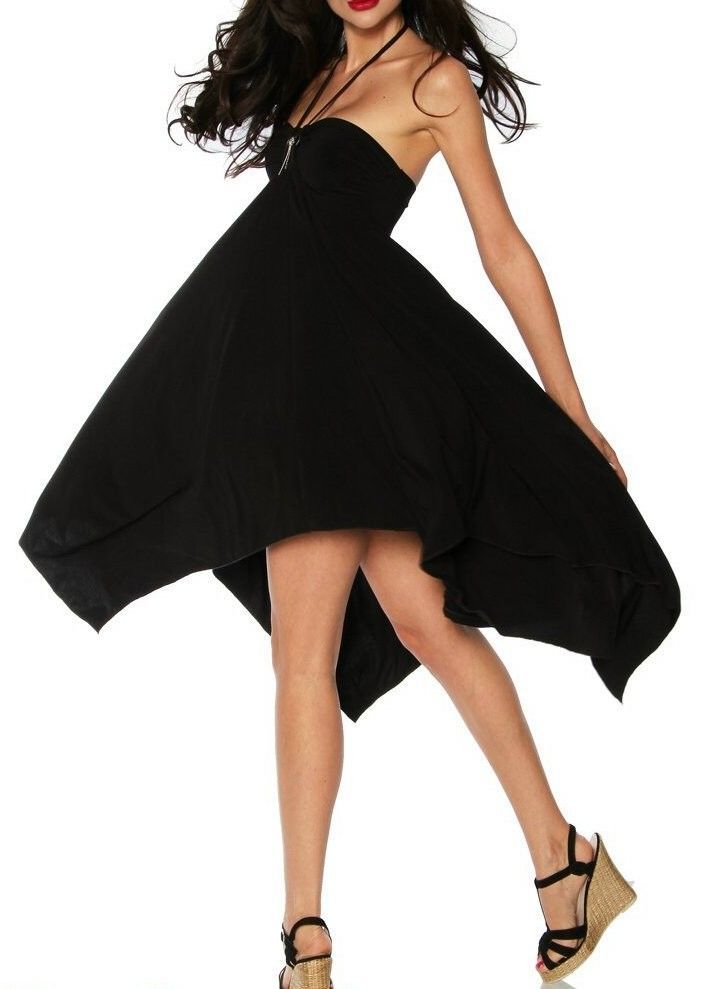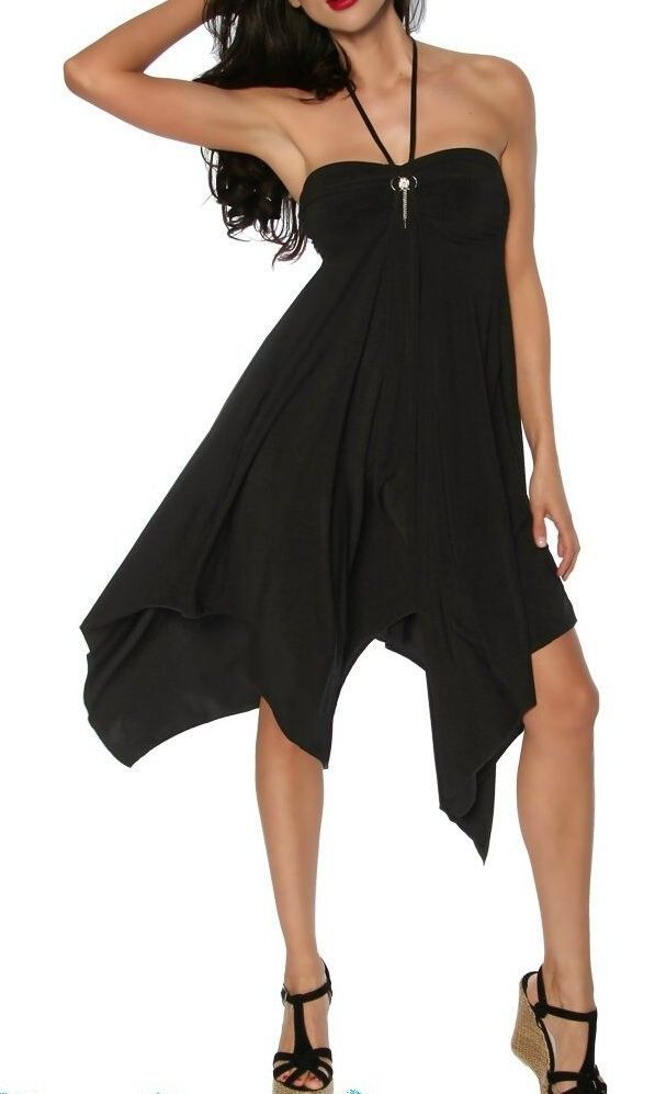 SeXy Miss Damen Neckholder Zipfel Kleid Asymmetrisch Strass XS 32/34 schwarz