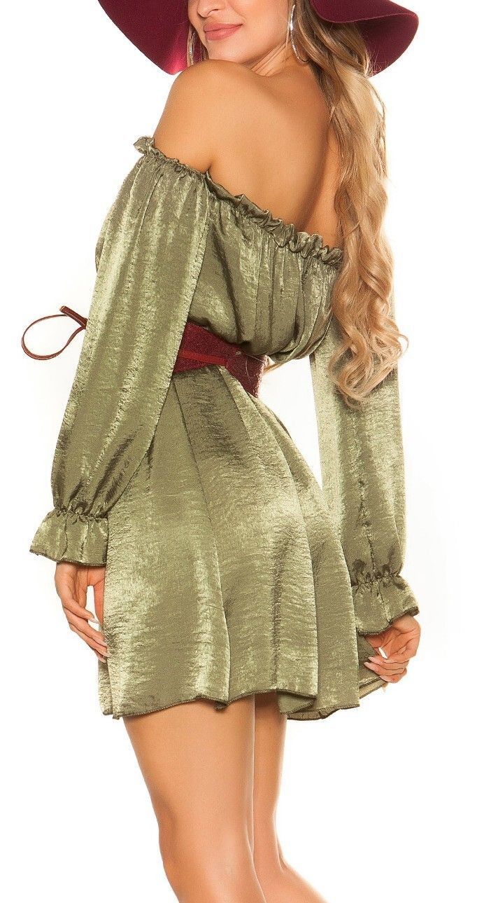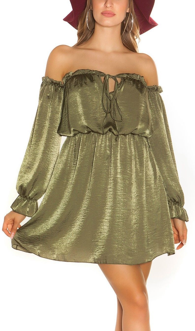 SeXy Miss Damen Off Shoulder Mini Kleid Langarm Dress khaki Crash Satin 34/36/38